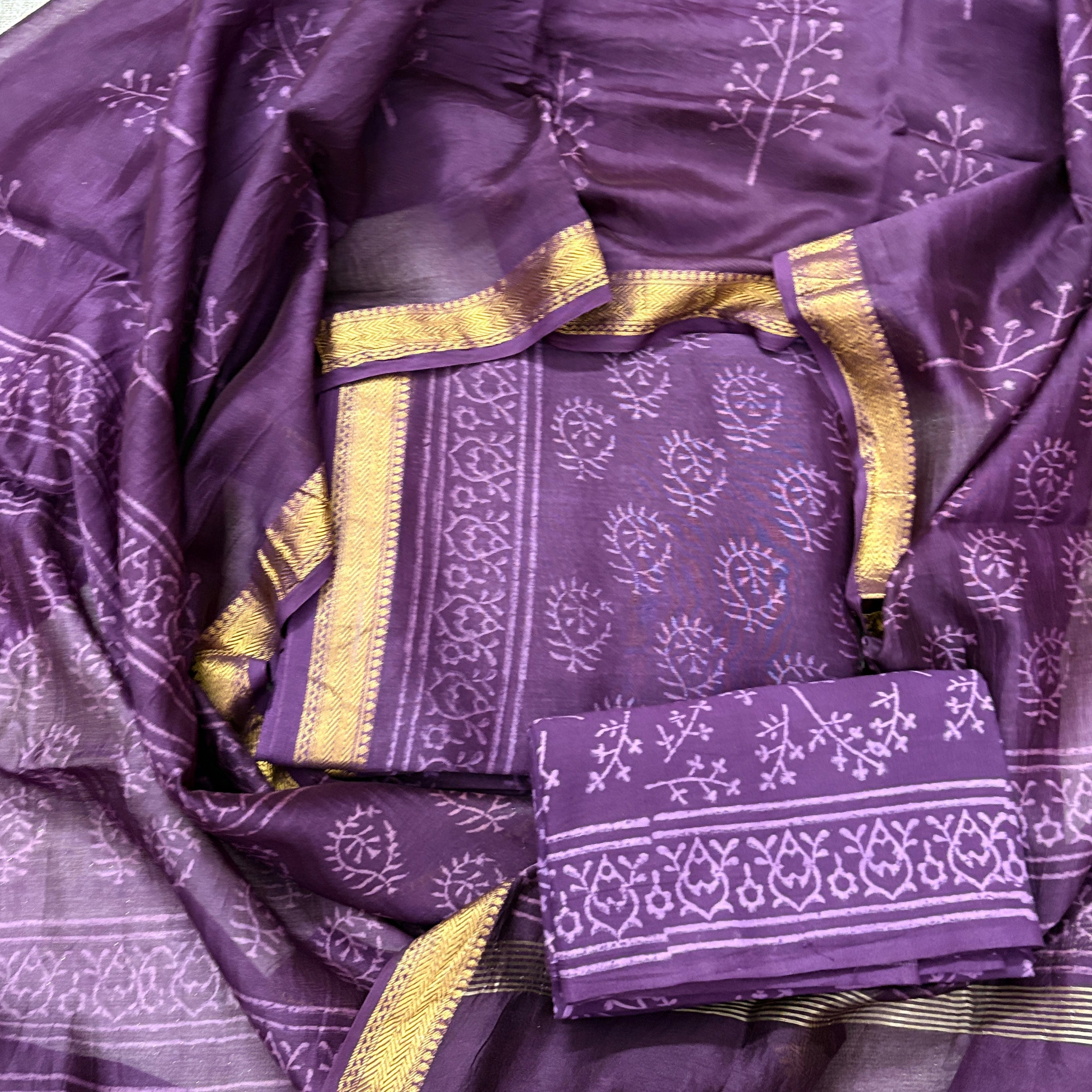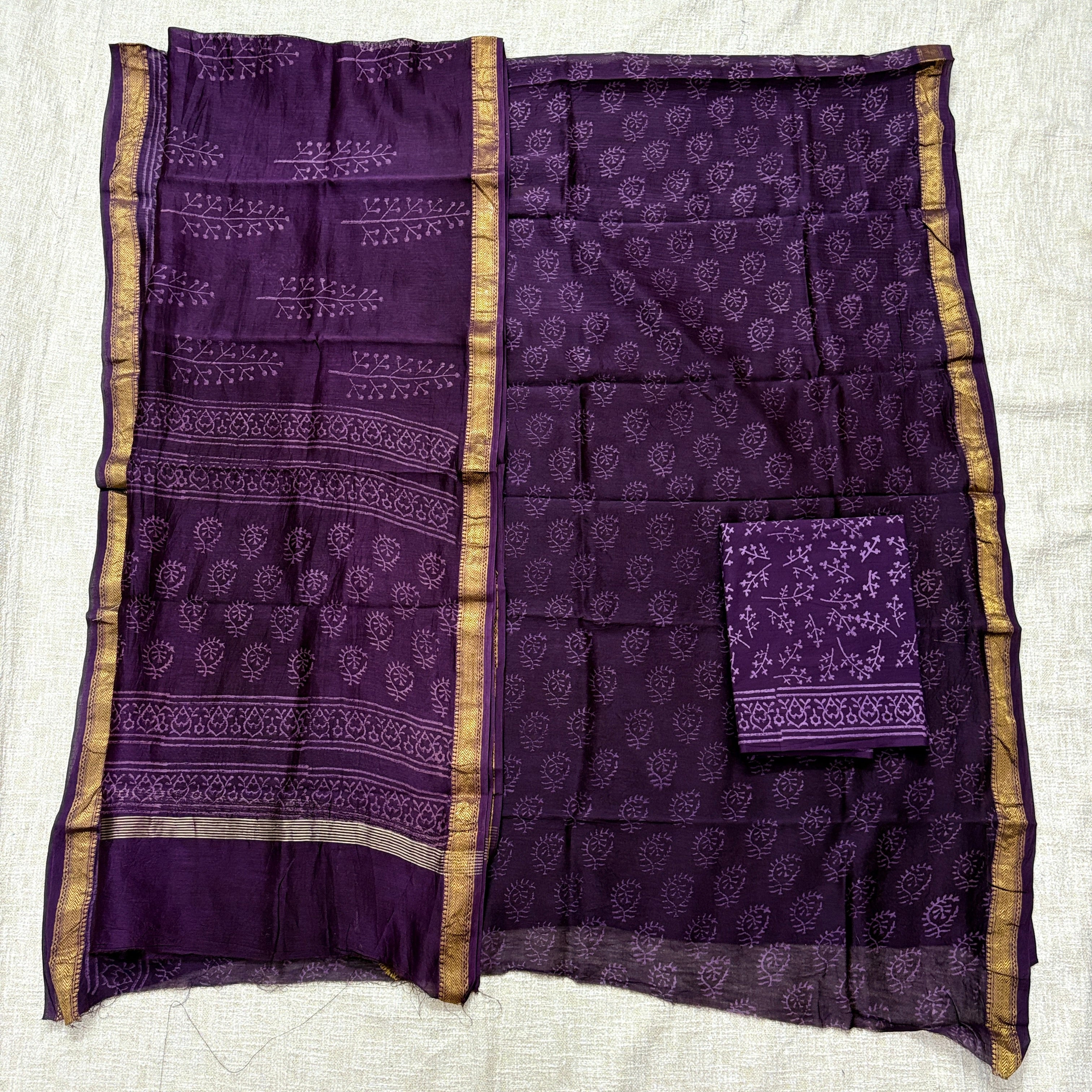 Handblock Maheshwari Suit Material with Maheshwari Dupatta