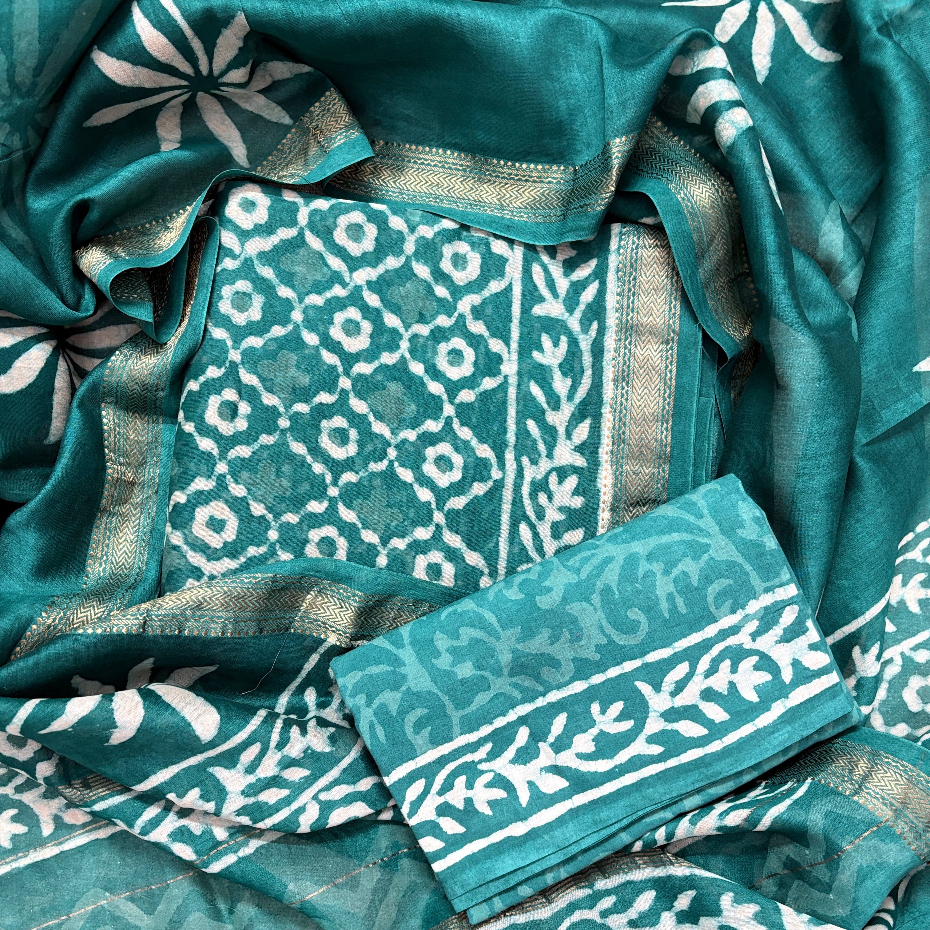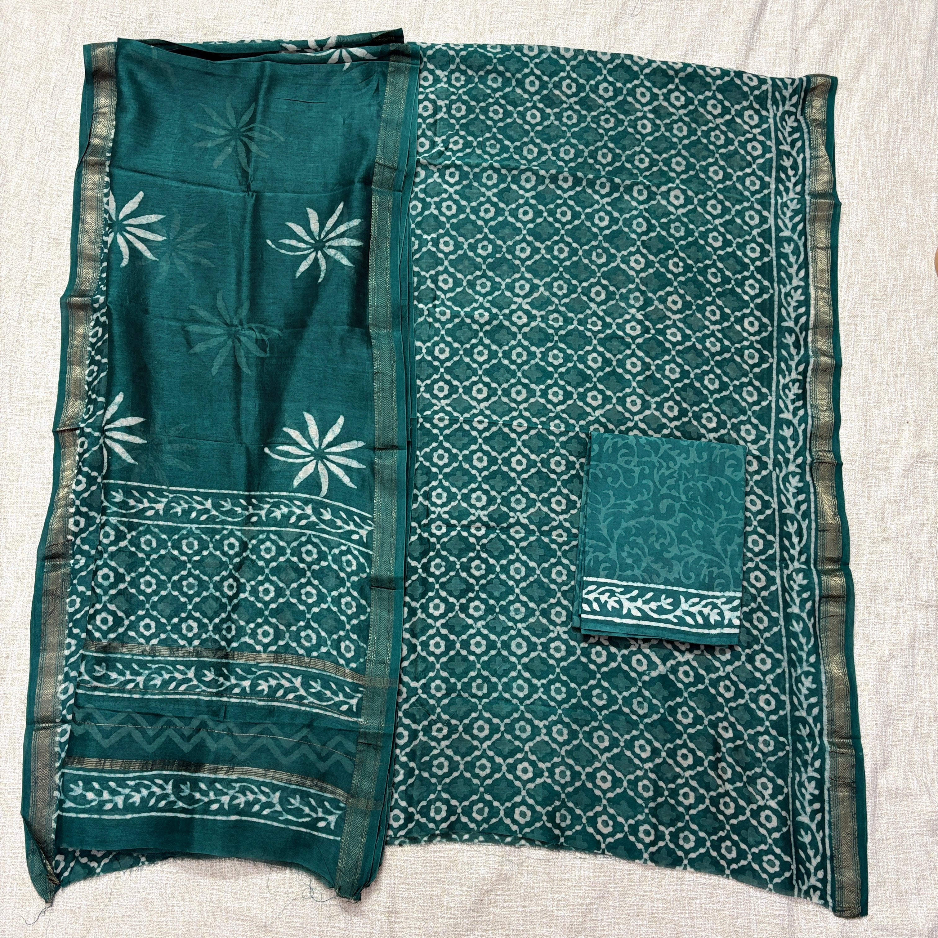 Handblock Maheshwari Suit Material with Maheshwari Dupatta