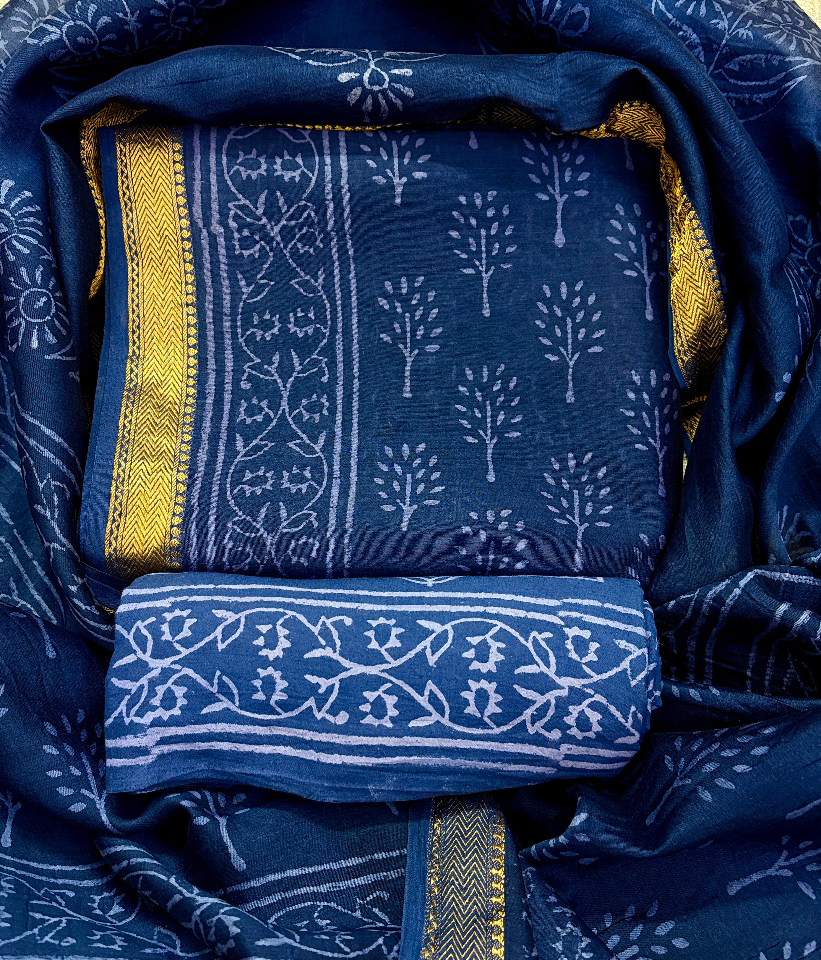Handblock Maheshwari Suit Material with Maheshwari Dupatta