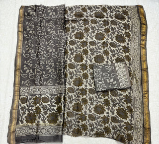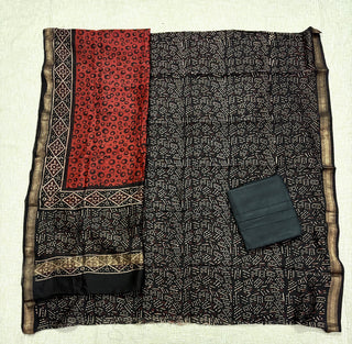 Black Ajrakh Handblock Maheshwari Top Material with Maheshwari Dupatta(Lining Included)