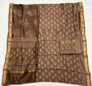 Brown Handblock Maheshwari Suit Material with Maheshwari Dupatta(Lining Included)
