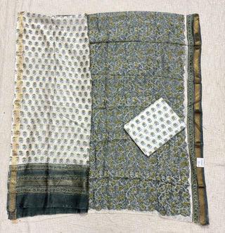 Green Handblock Maheshwari Suit Material with Maheshwari Dupatta(Lining Included)