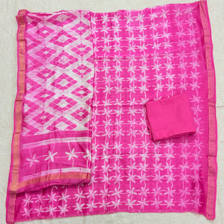Needle Shibori Handblock Maheshwari Suit Material with Maheshwari Dupatta(Lining Included)