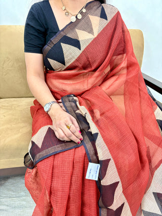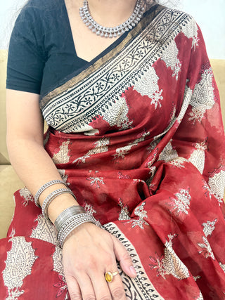 Handblock Maheshwari Silk Saree with Unstitched Blouse Piece (Lining Included)