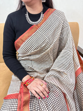 Maheshwari Silk Saree with unstitched Blouse (Lining Included)
