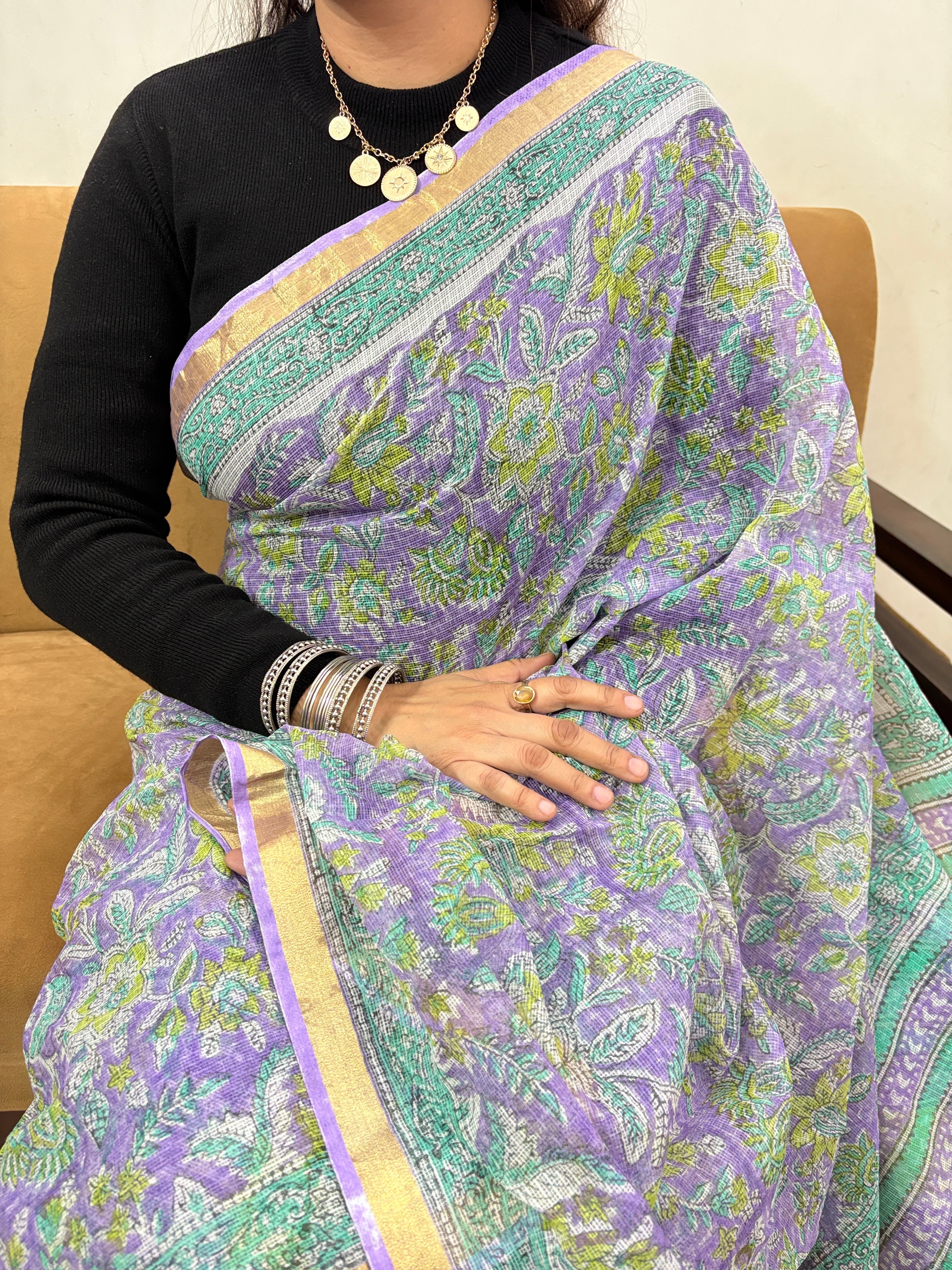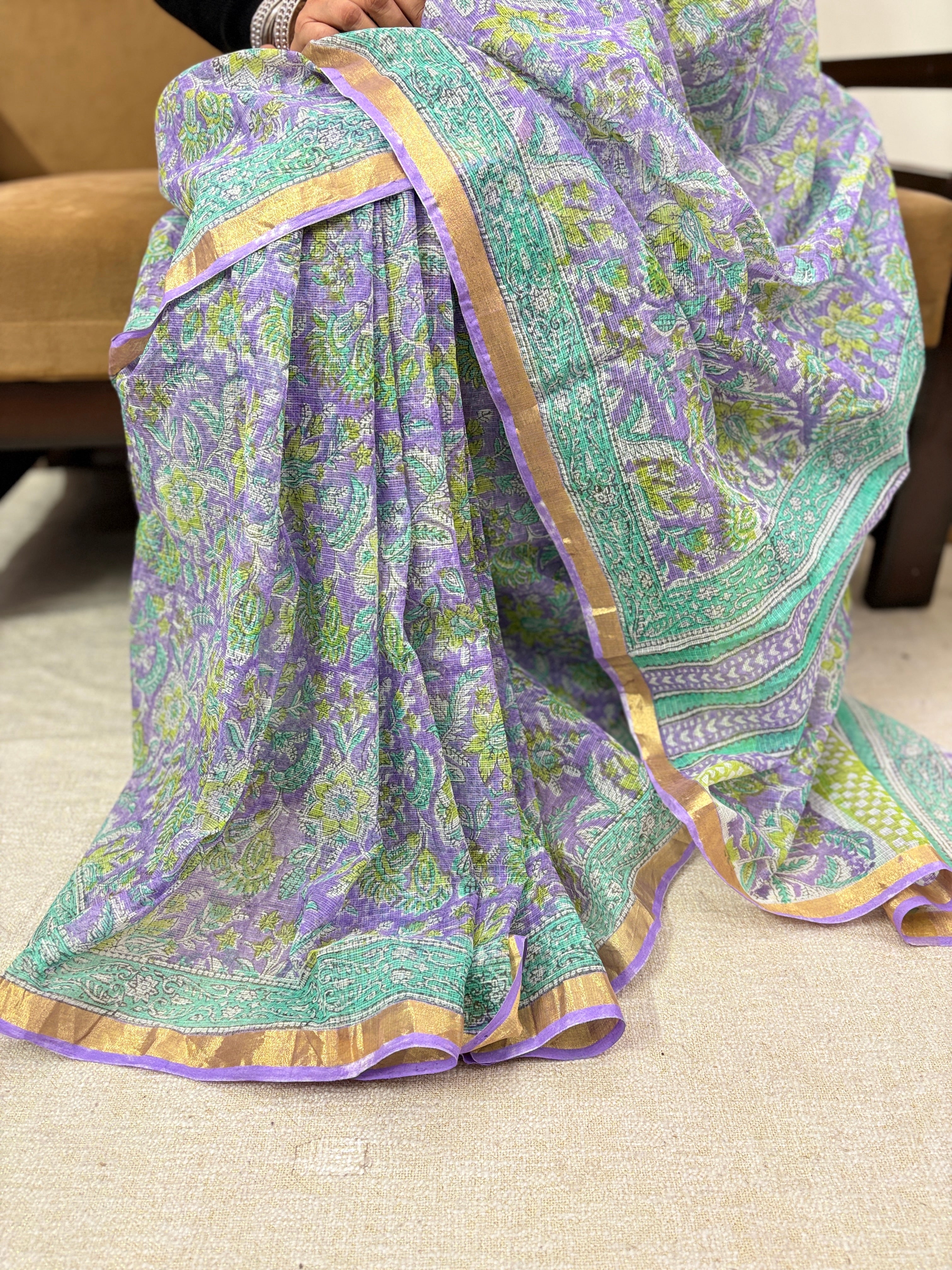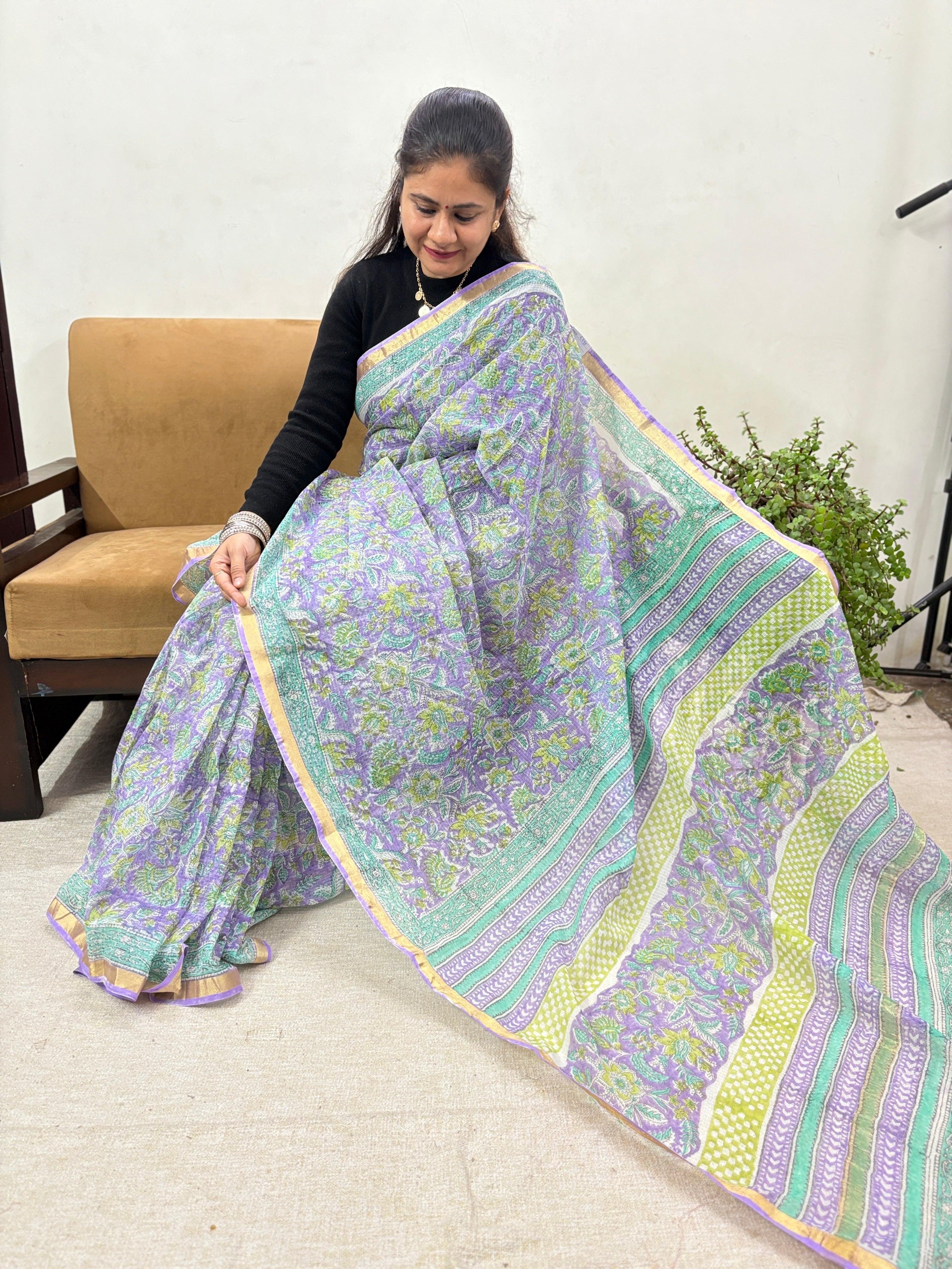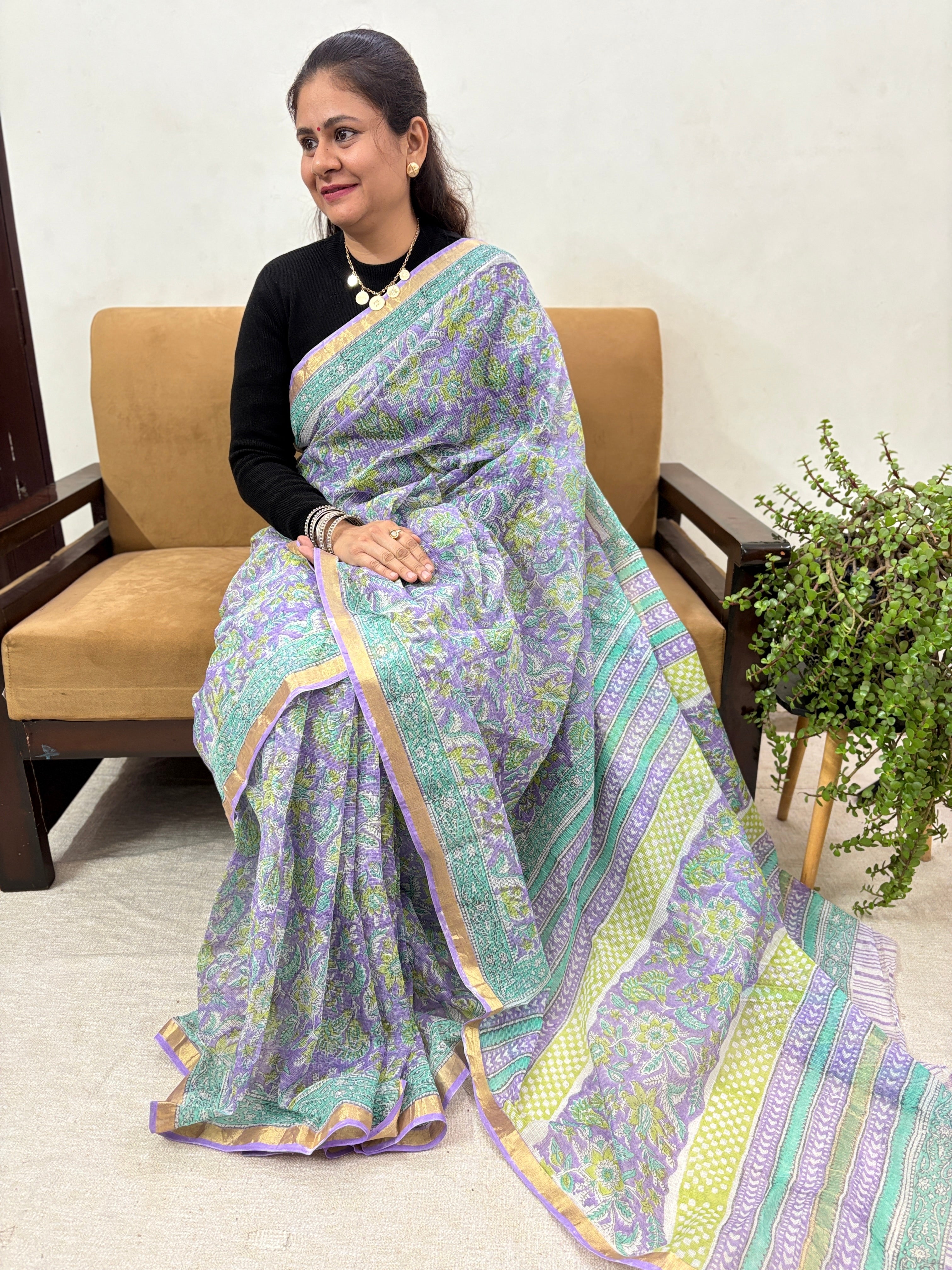 Office Wear Kota Doria Cotton Saree with Unstitched blouse Piece(Lining Included)