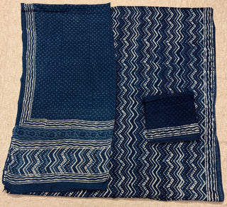 Indigo color Handblock Office Wear Suit fabric with pure cotton Dupatta