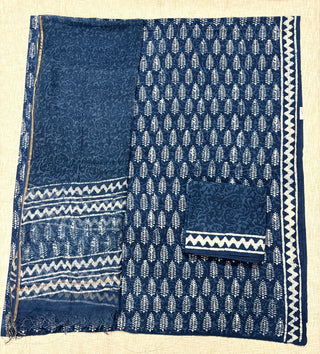 Cotton Dabu Indigo Handblock Office Wear Suit fabric with Kota doria Dupatta