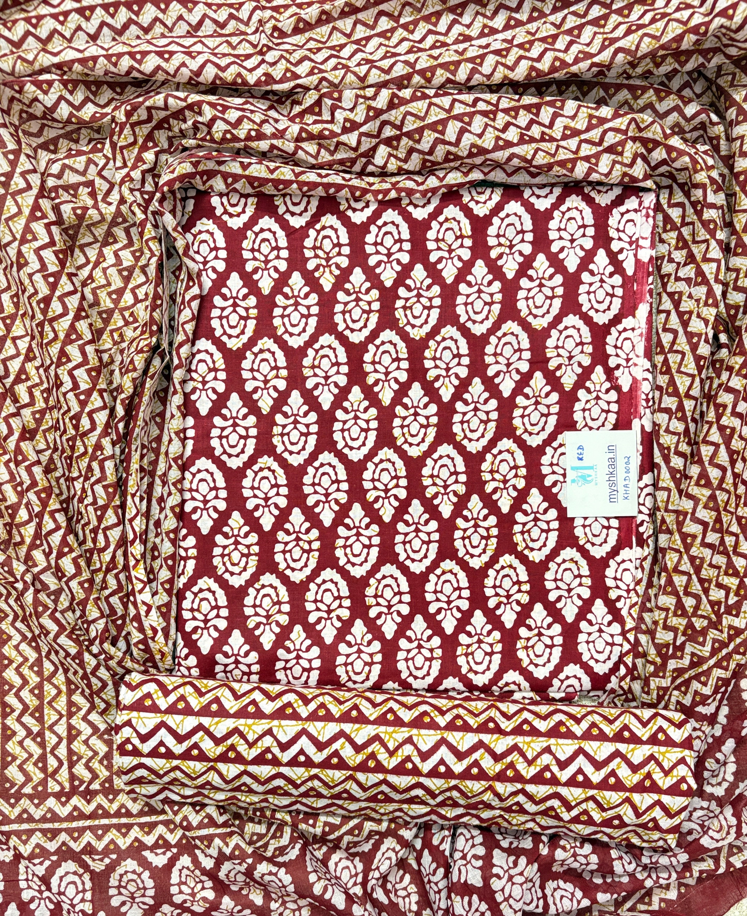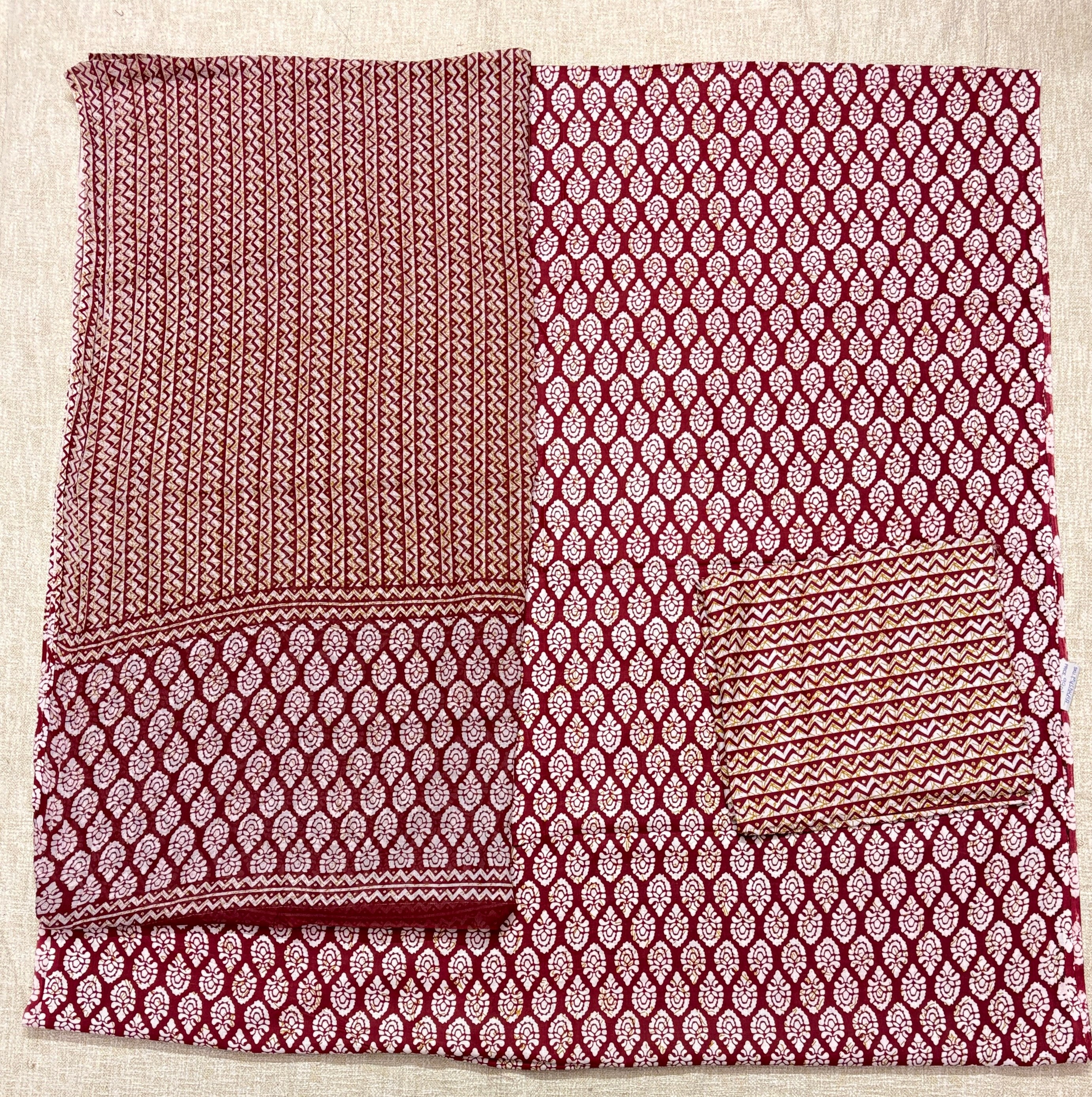 Burgundy Handblock Print Cotton Suit fabric with Cotton Dupatta