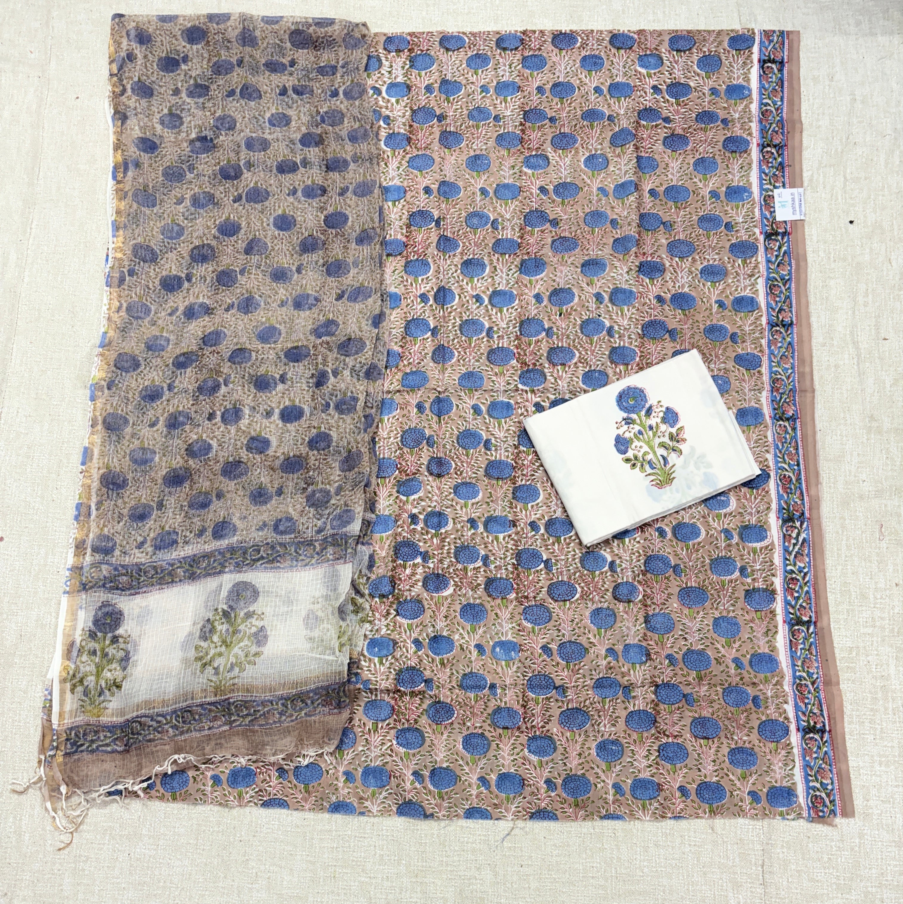 - Fabric Details : Top : Handloom Cotton with handblock print || Bottom : Handloom Cotton || Dupatta : Kota Doria Dupatta