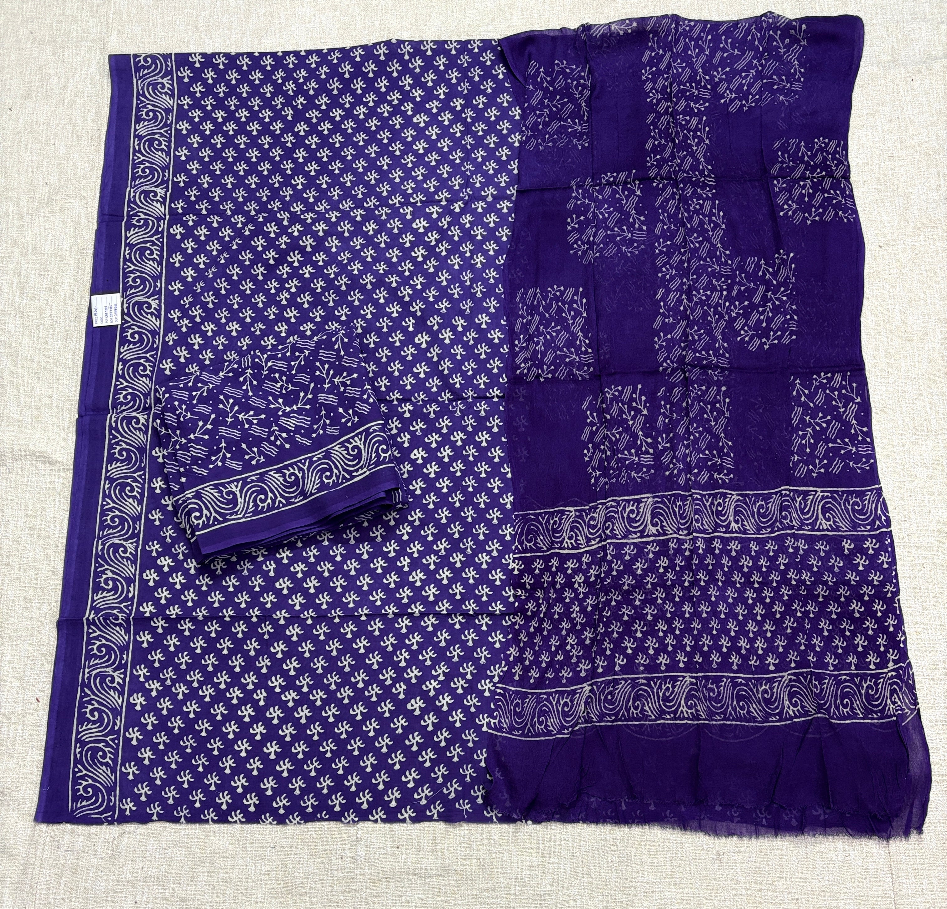 Premium Cotton Handblock Suit fabric with Chiffon Dupatta