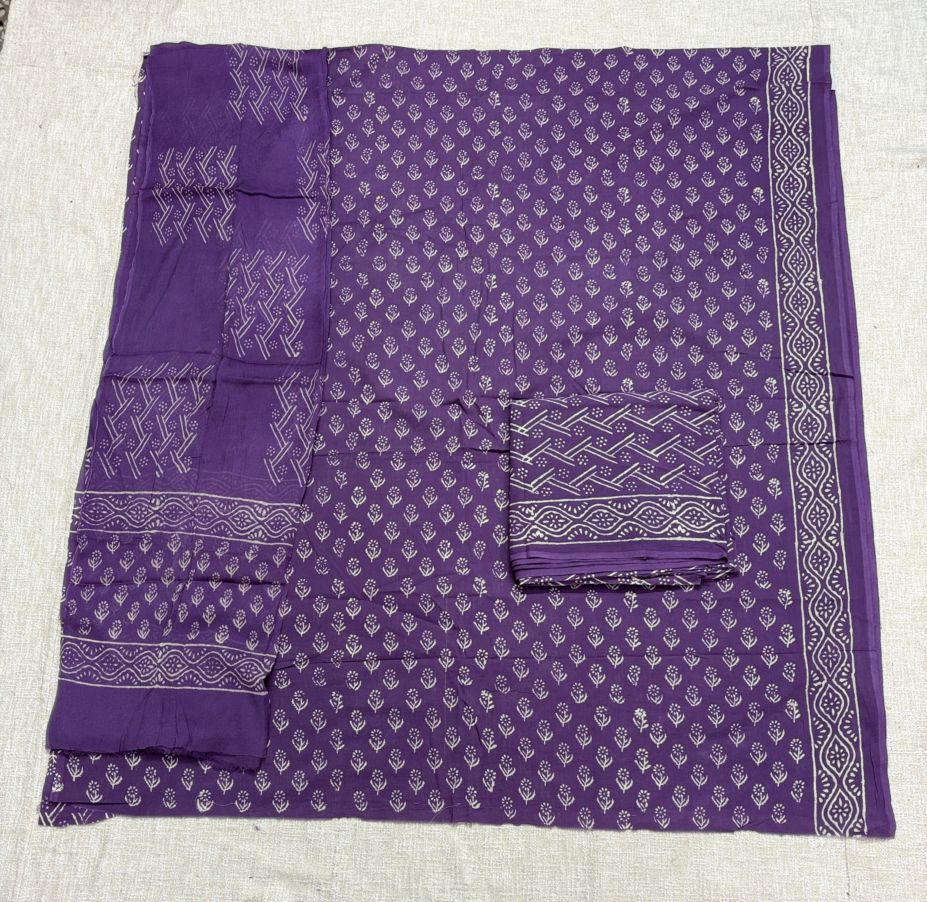Premium Cotton Handblock Suit fabric with Chiffon Dupatta