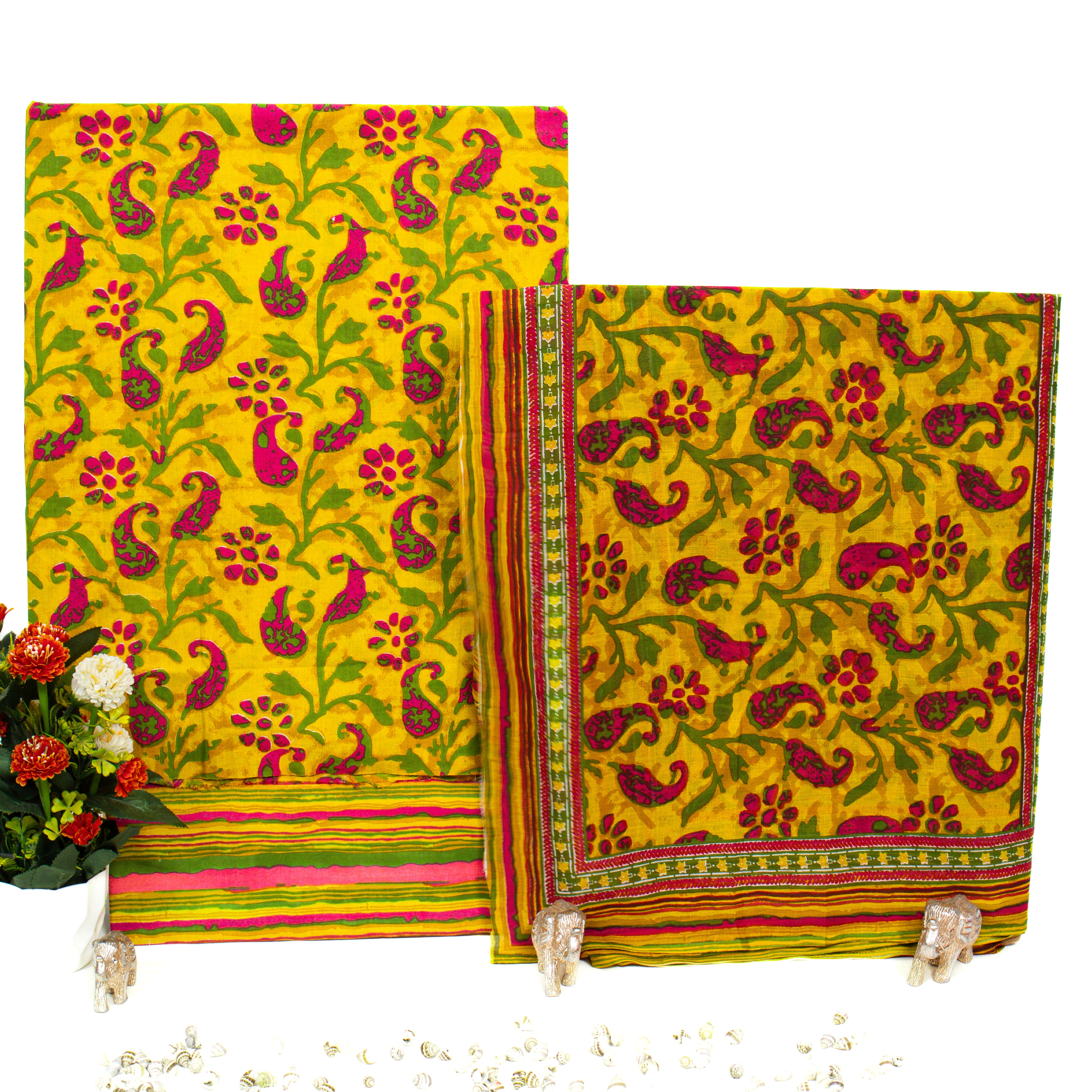 - Yelllow Sanganeri Handblock Print Cotton Office Wear Suit Fabric