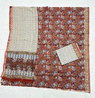 Cotton Kalamkari Handblock Office Wear Suit fabric with Kota doria Dupatta