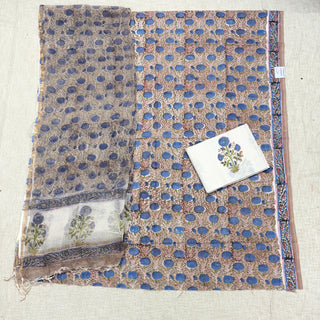 Blue Cotton Kalamkari Handblock Office Wear Suit fabric with Kota doria Dupatta