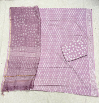 Cotton Handblock Office Wear Suit fabric with Kota Doria Dupatta