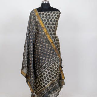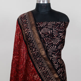 Black Ajrakh Handblock Maheshwari Top Material with Maheshwari Dupatta