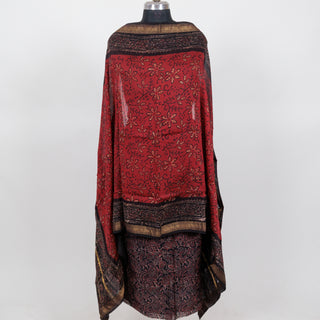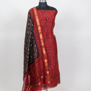 Red Ajrakh Handblock Maheshwari Top Material with Maheshwari Dupatta