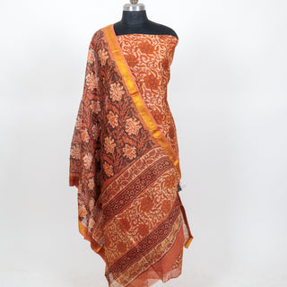 Vanaspati Ajrakh Handblock Maheshwari Suit Material with Maheshwari Dupatta