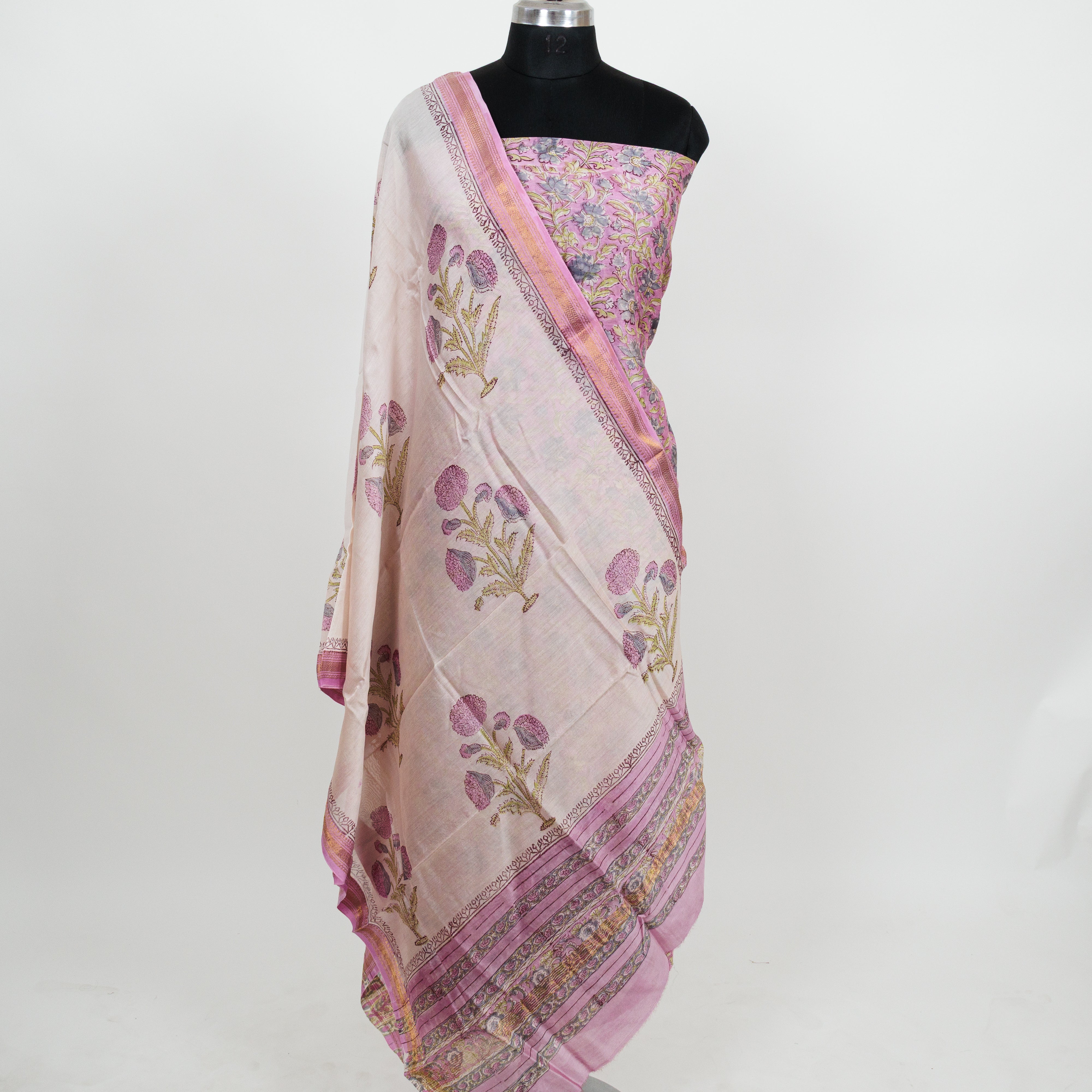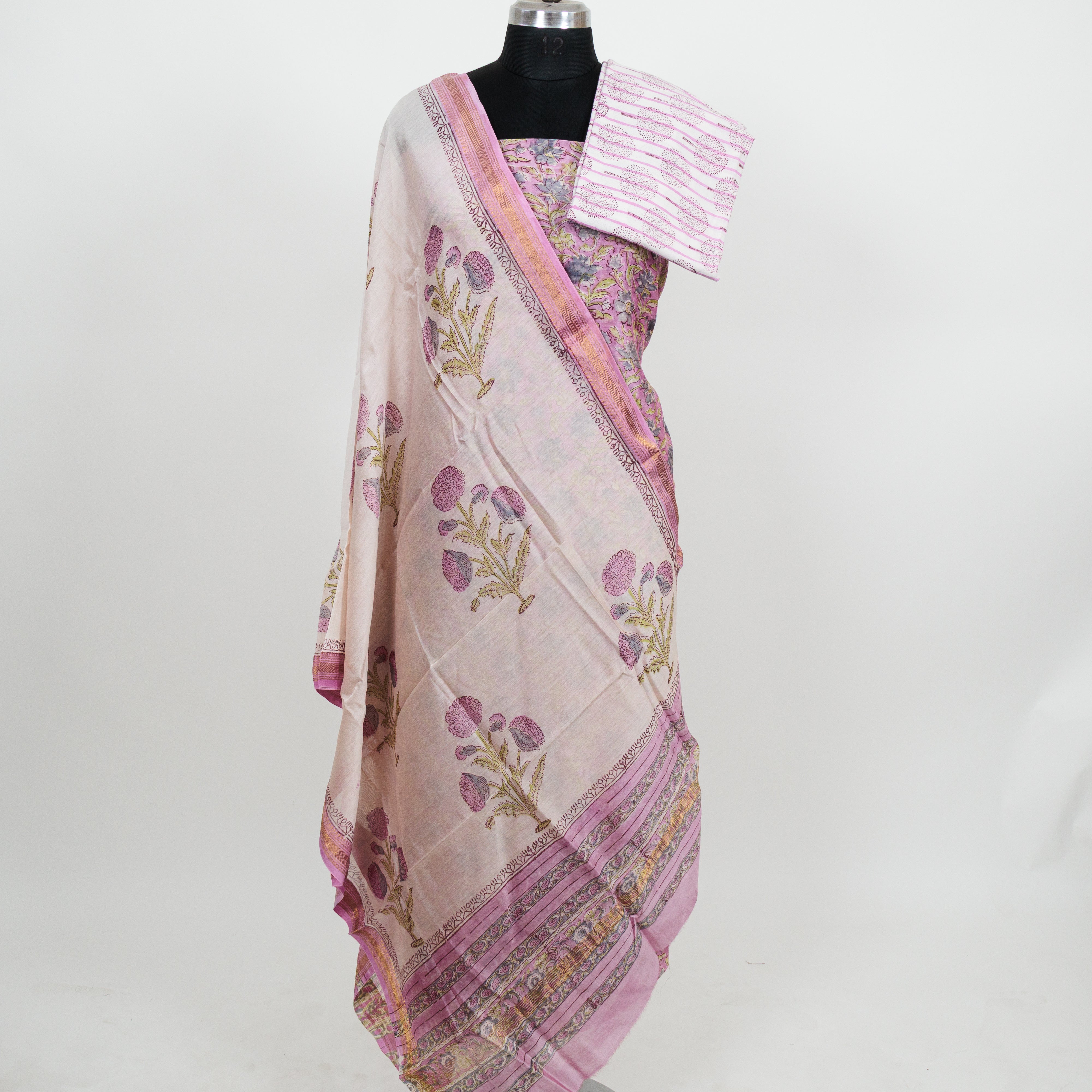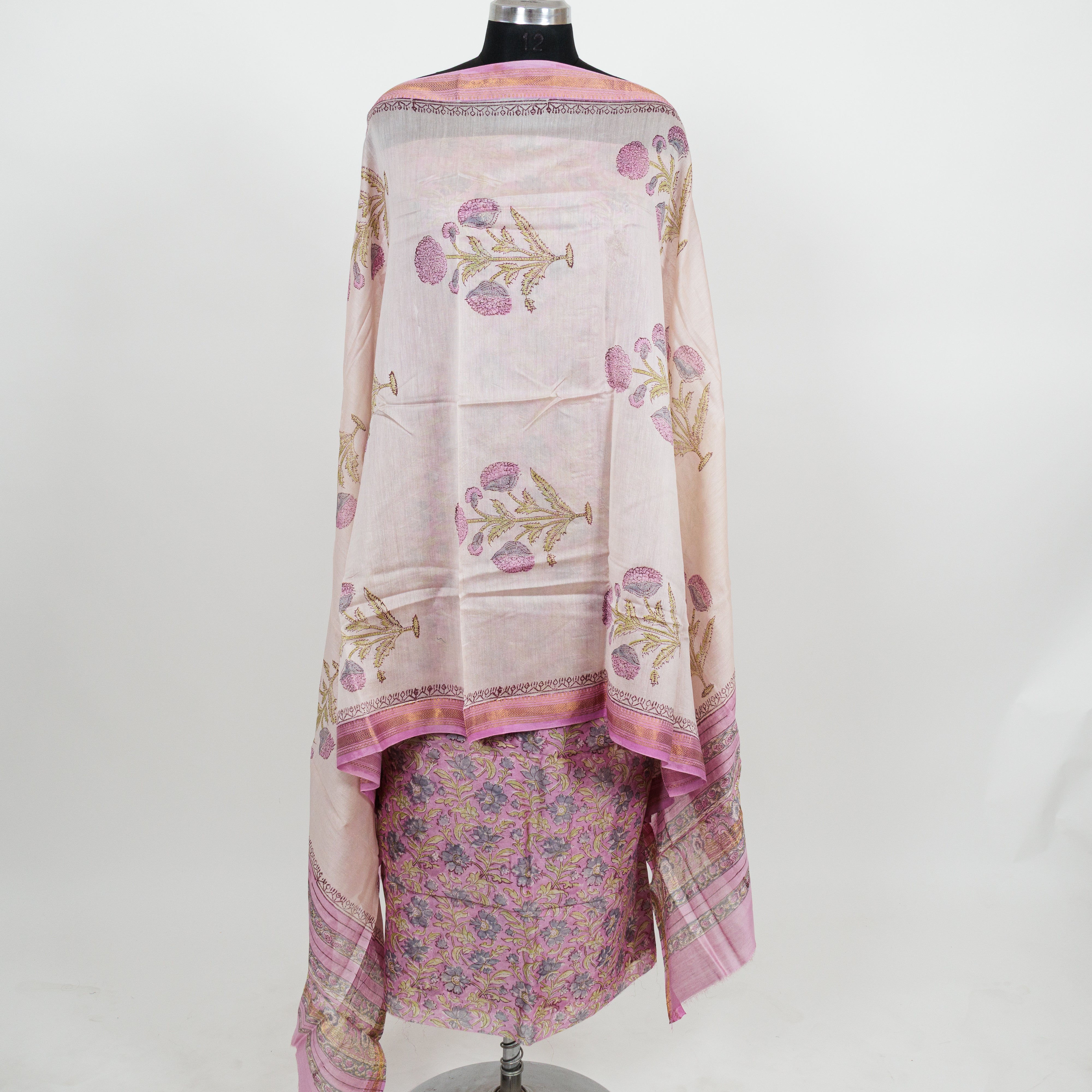 Pink Handblock Maheshwari Suit Material with Maheshwari Dupatta