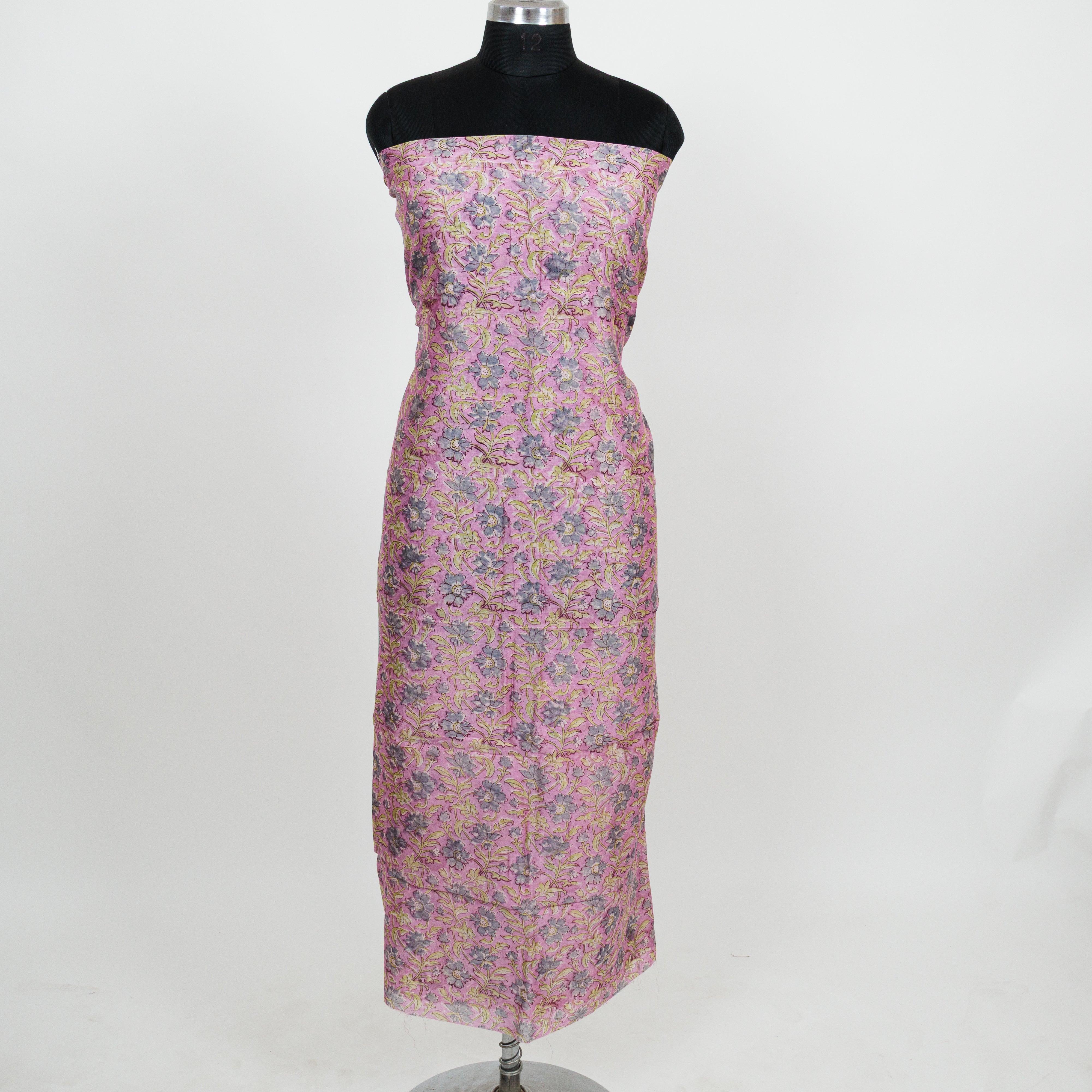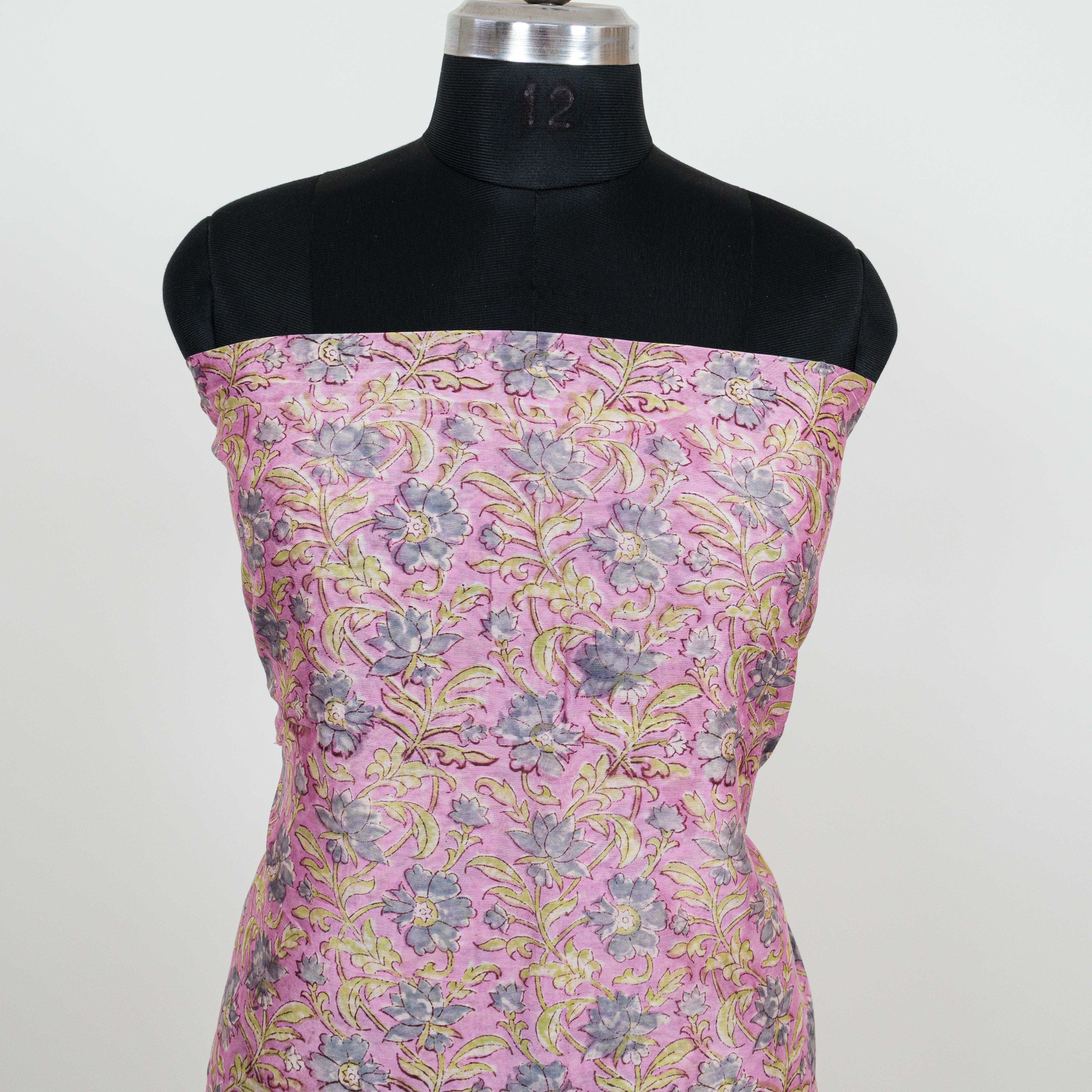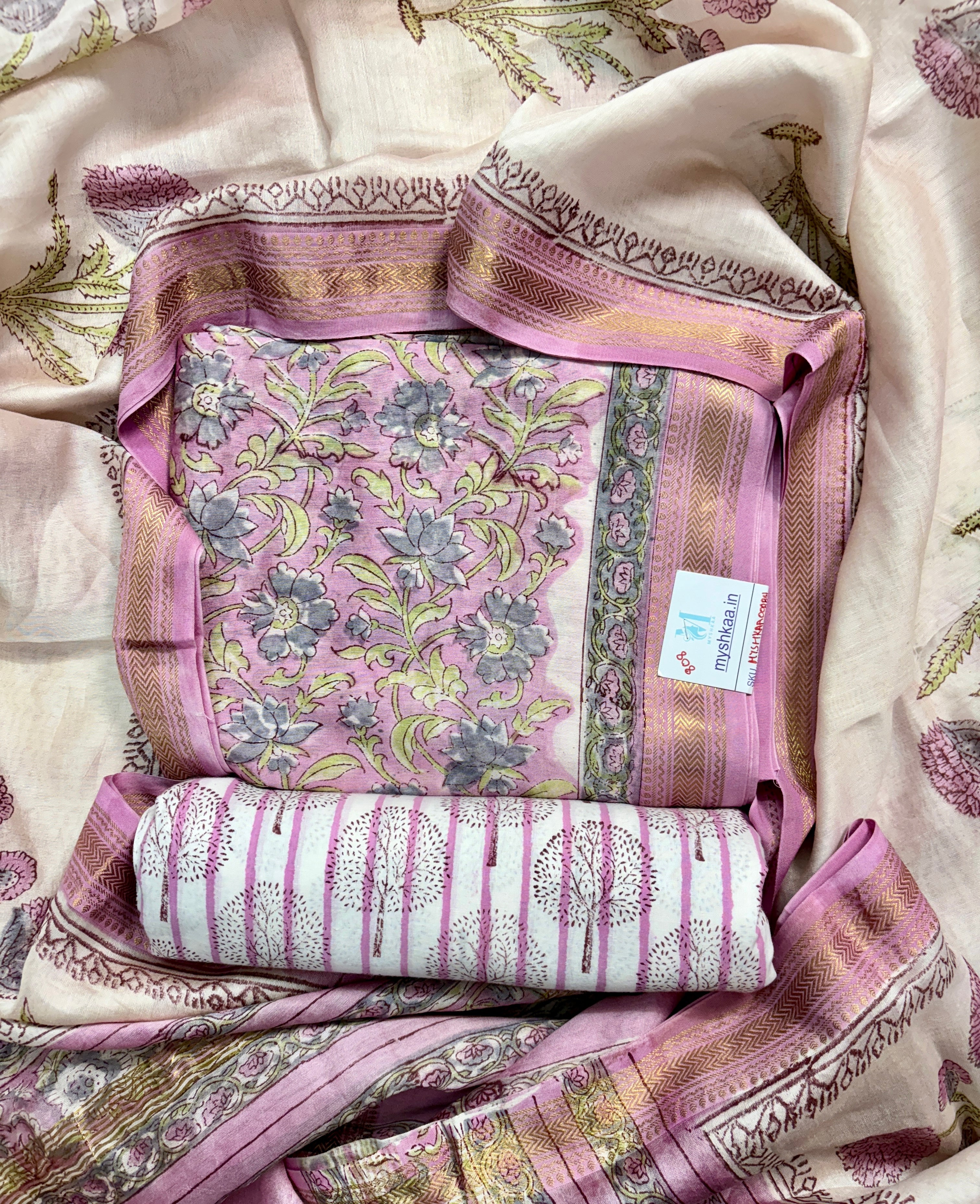 Pink Handblock Maheshwari Suit Material with Maheshwari Dupatta