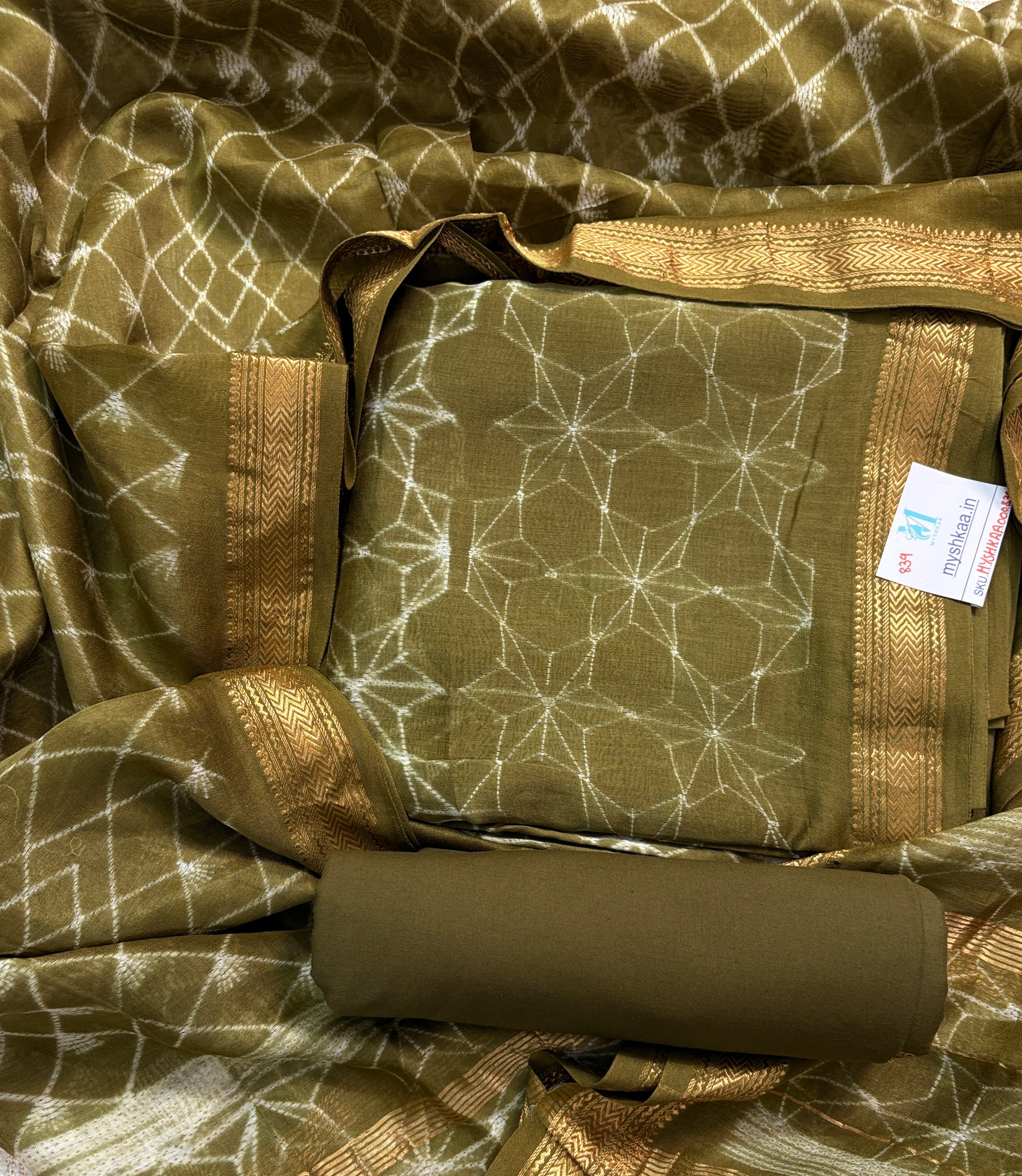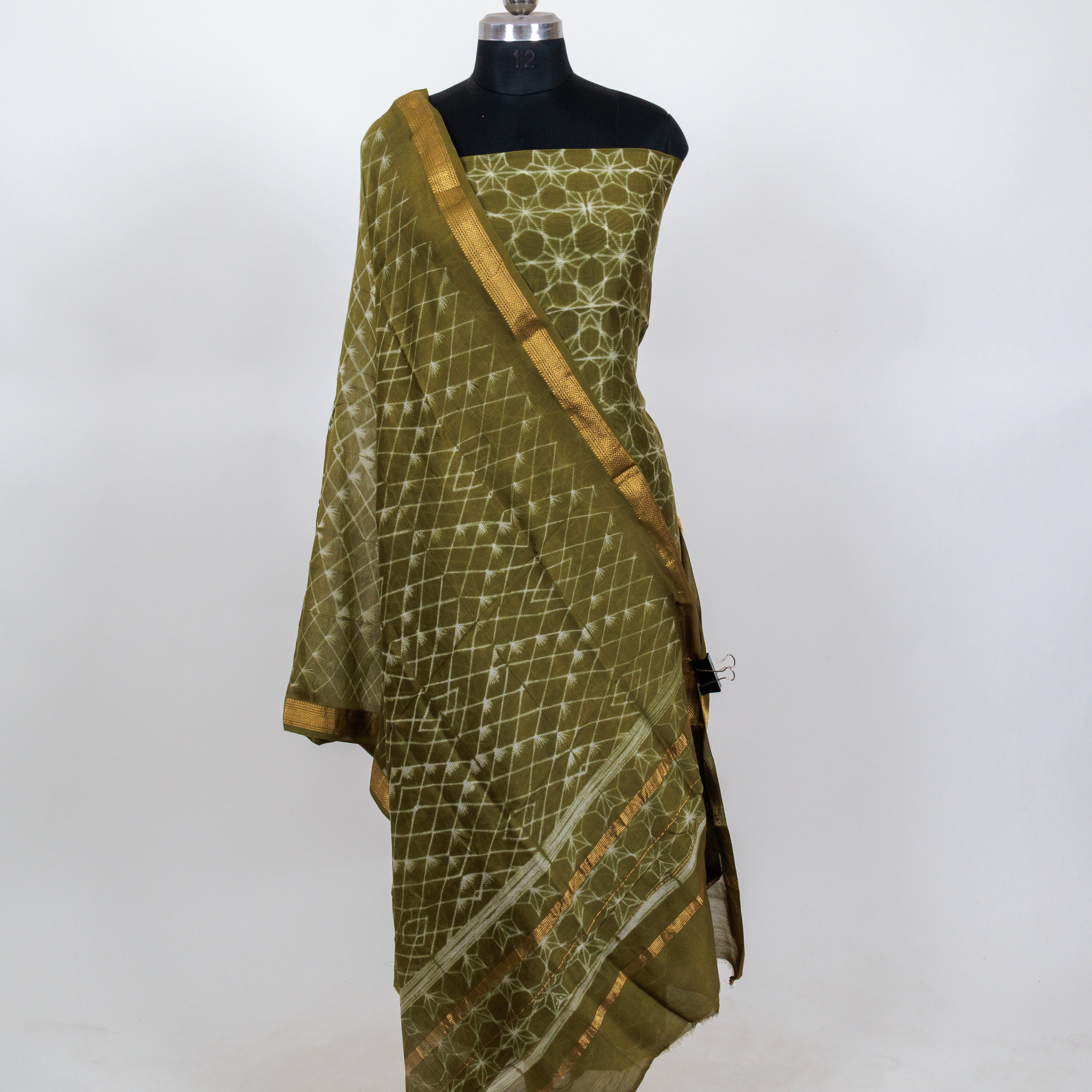 Needle Shibori Handblock Maheshwari Suit Material with Maheshwari Dupatta