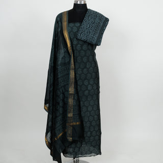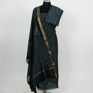 Dark Green Handblock Maheshwari Suit Material with Maheshwari Dupatta