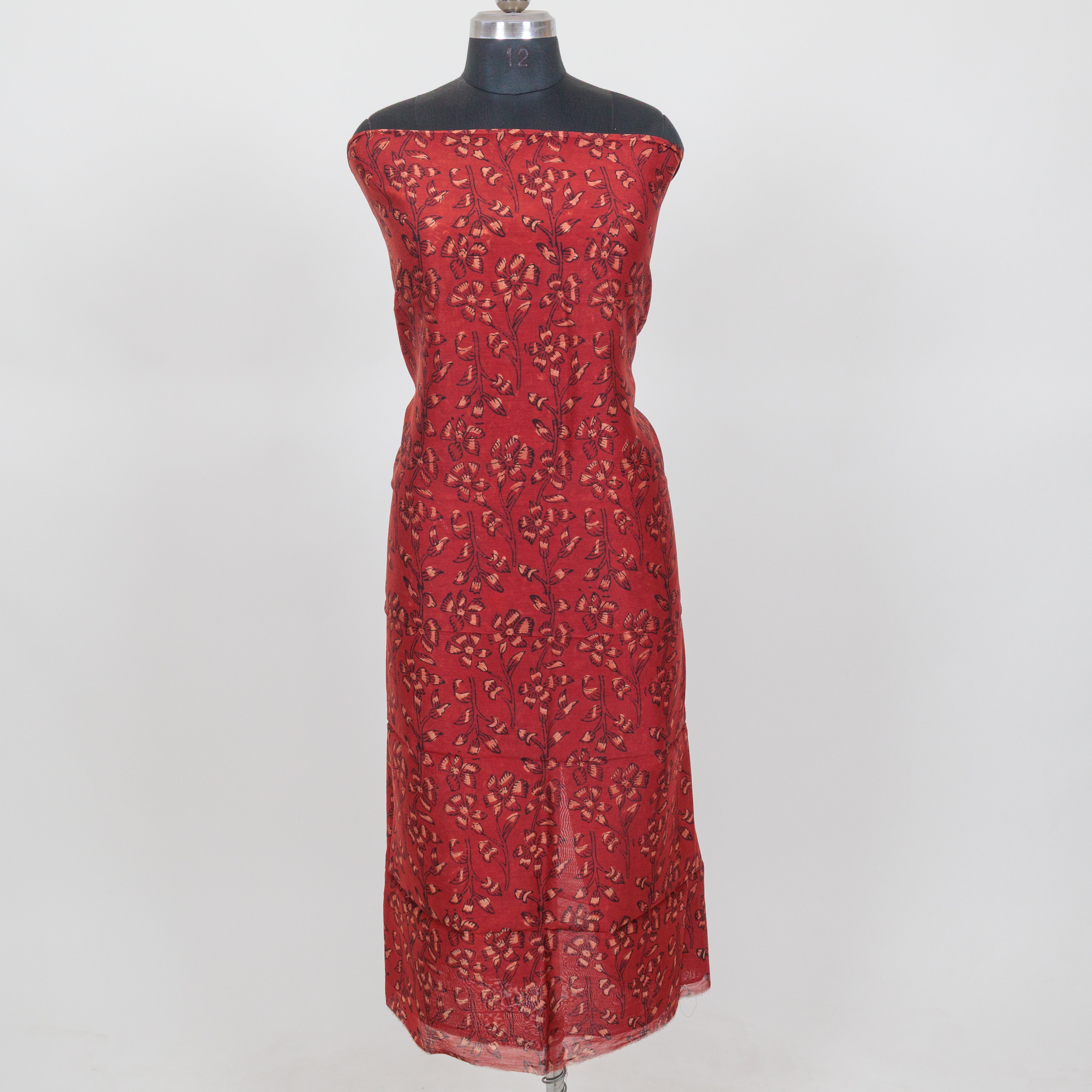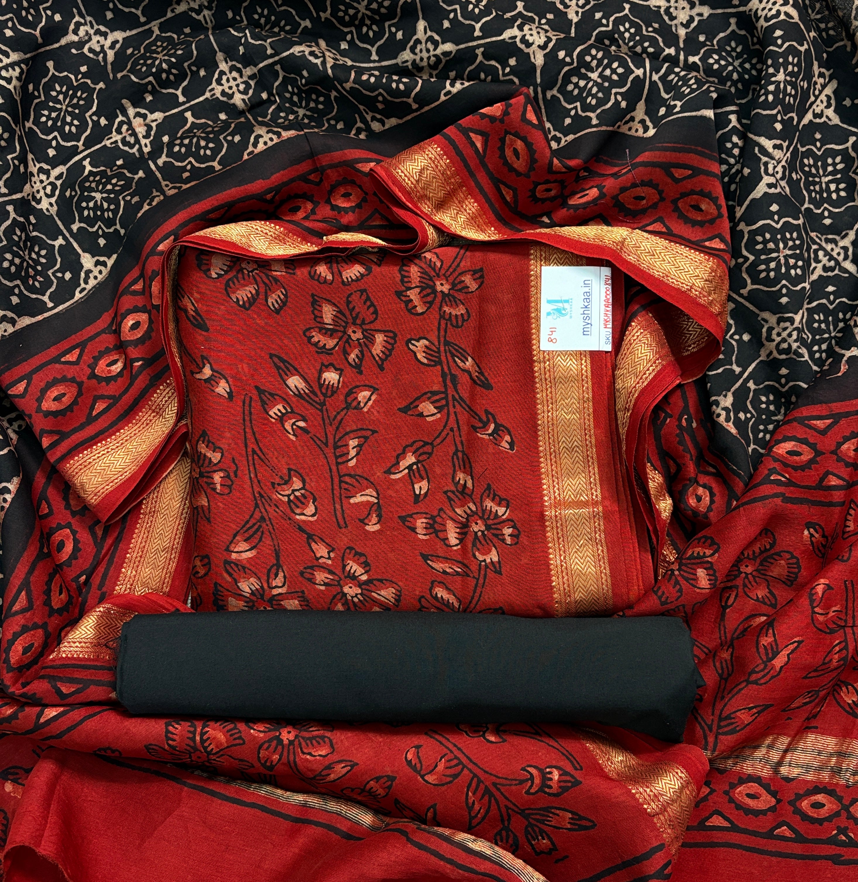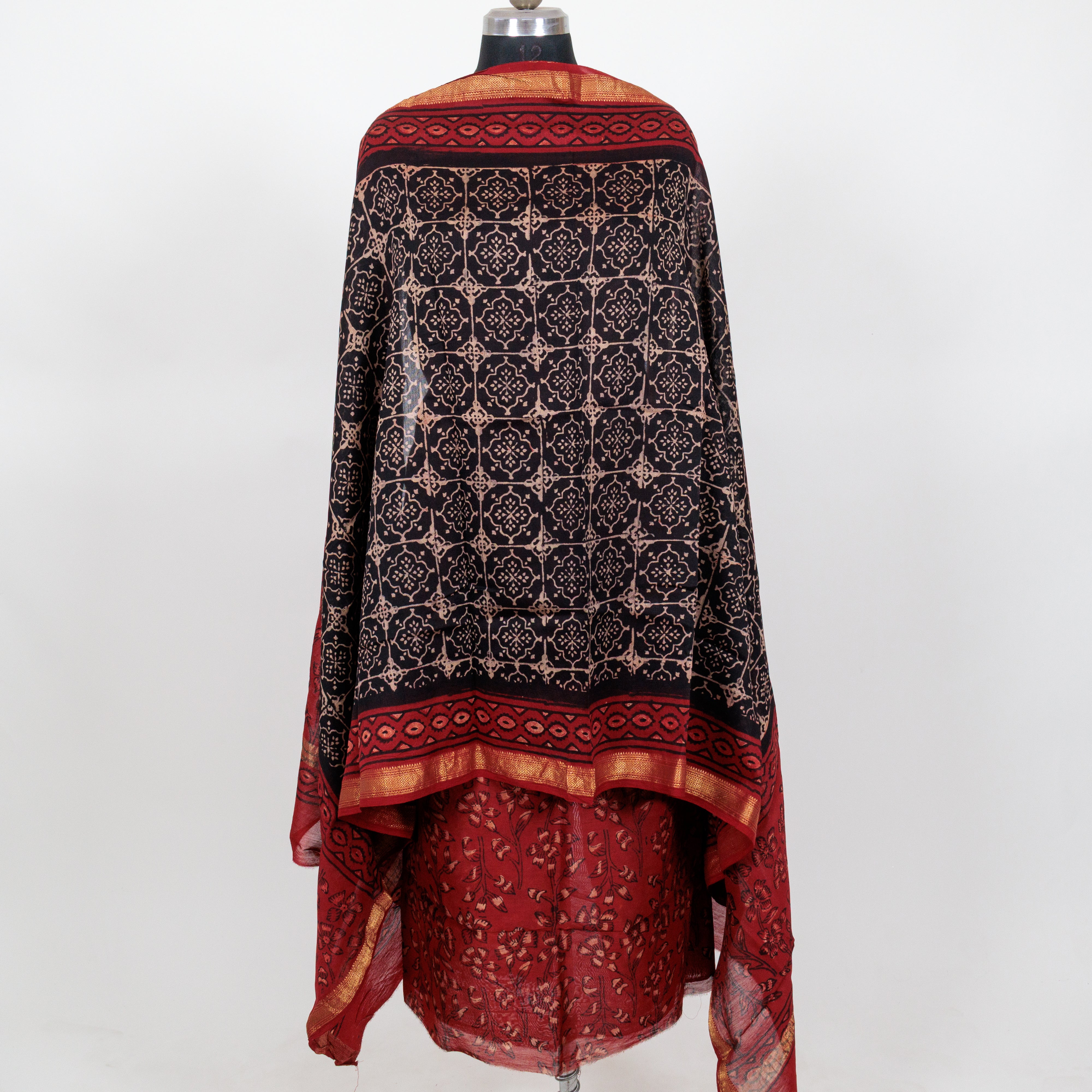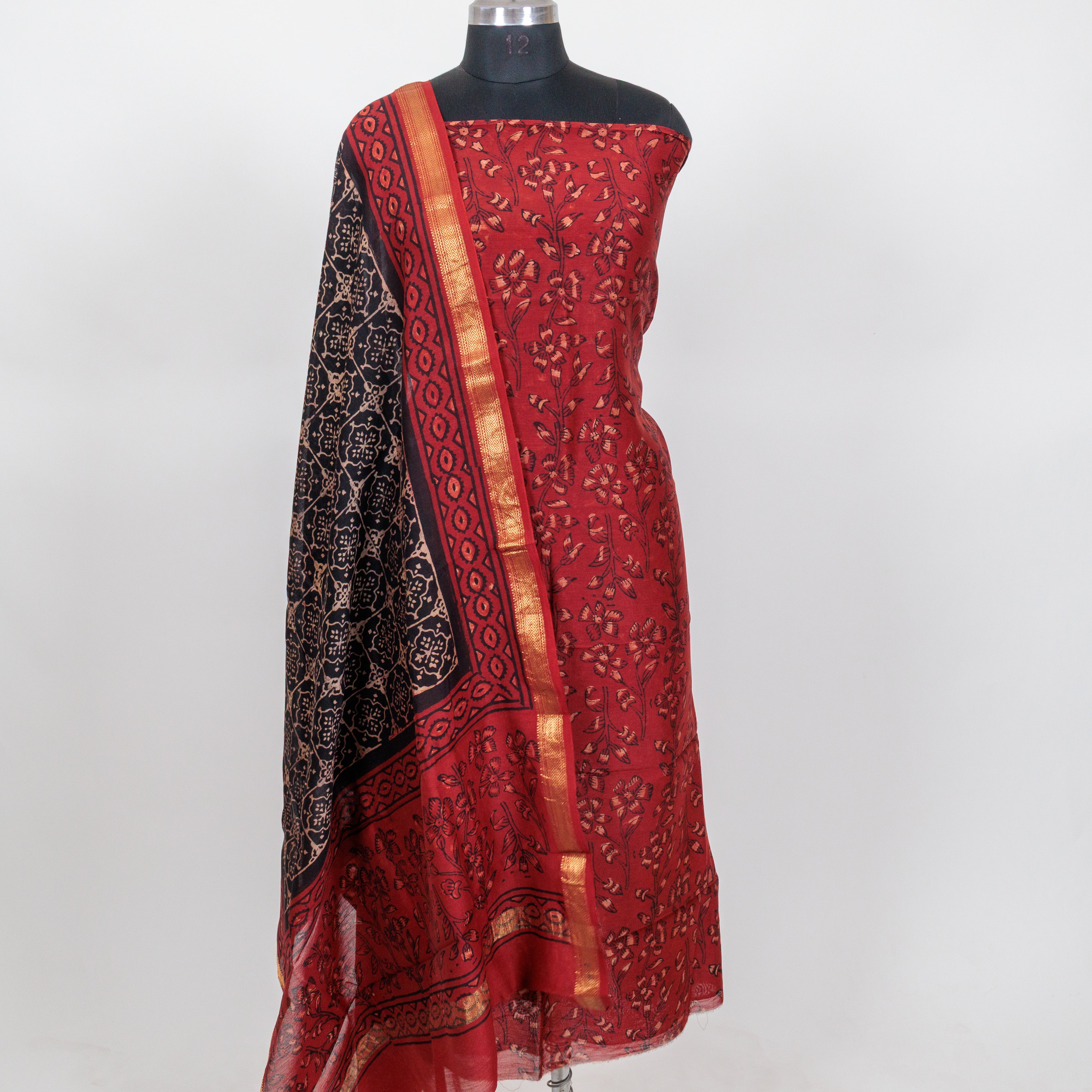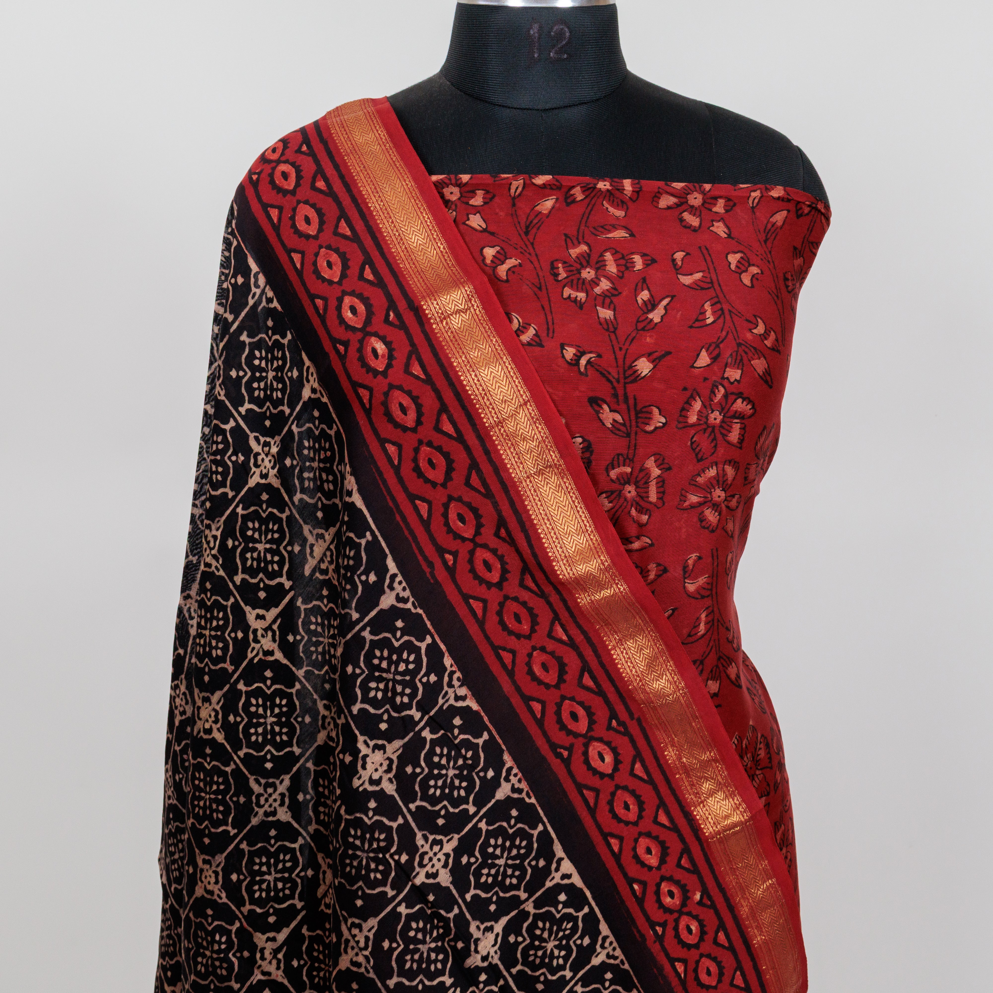 Red Ajrakh Handblock Maheshwari Top Material with Maheshwari Dupatta