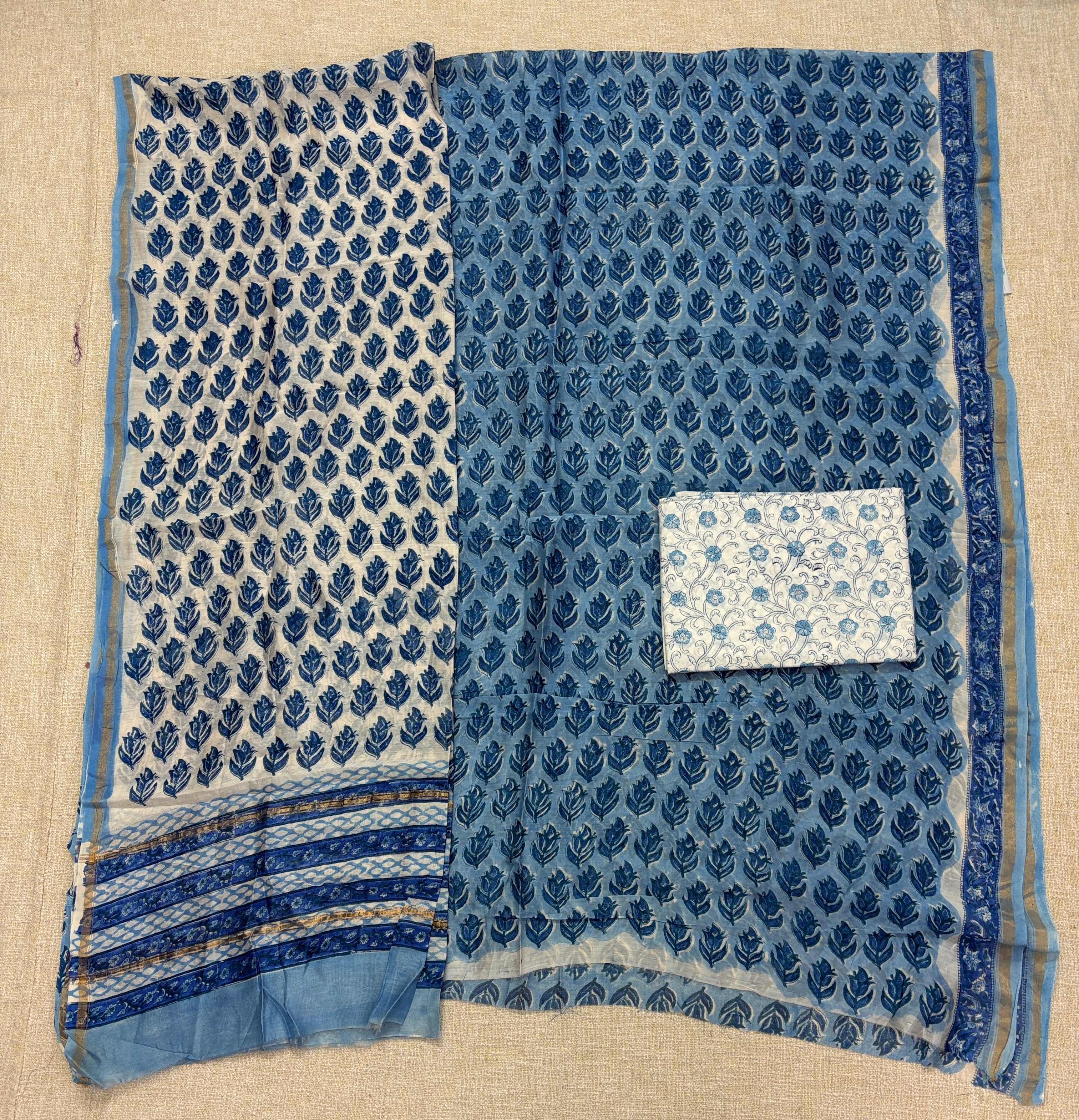 Handblock Chanderi Suit Material with Chanderi Dupatta(Lining Included)