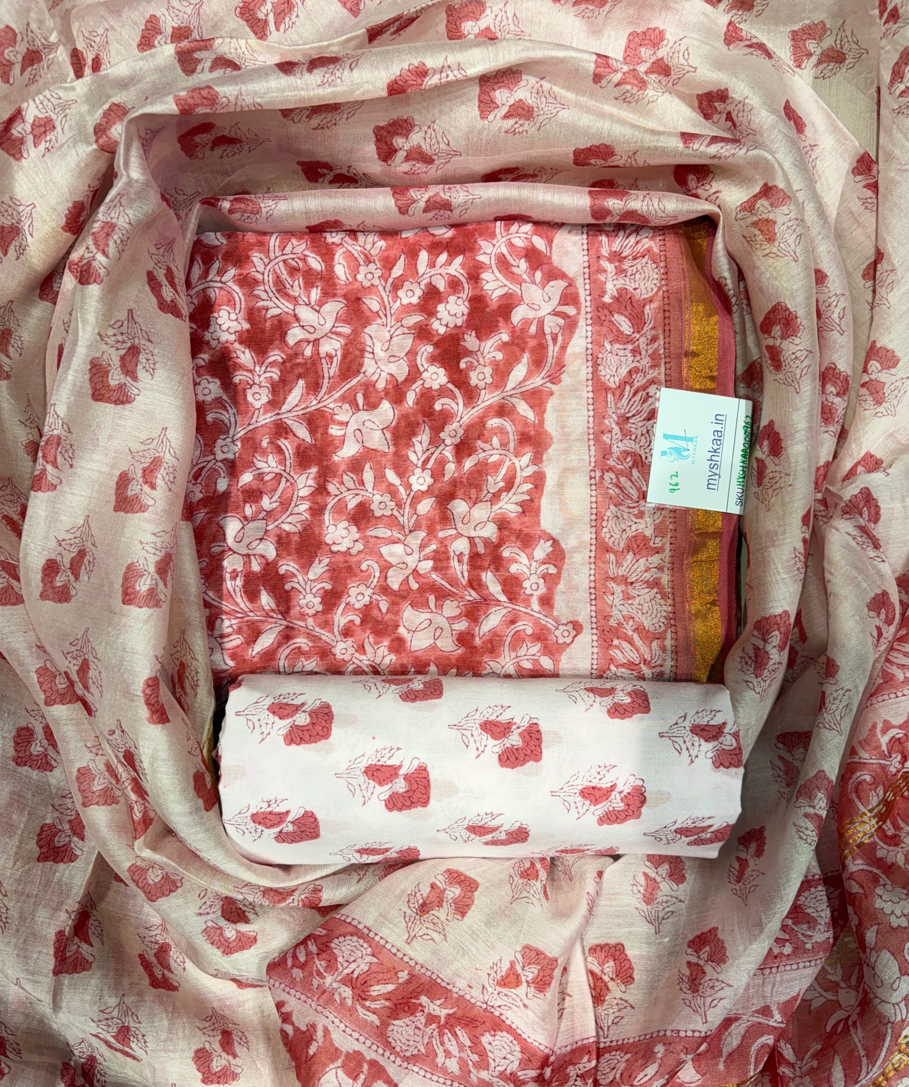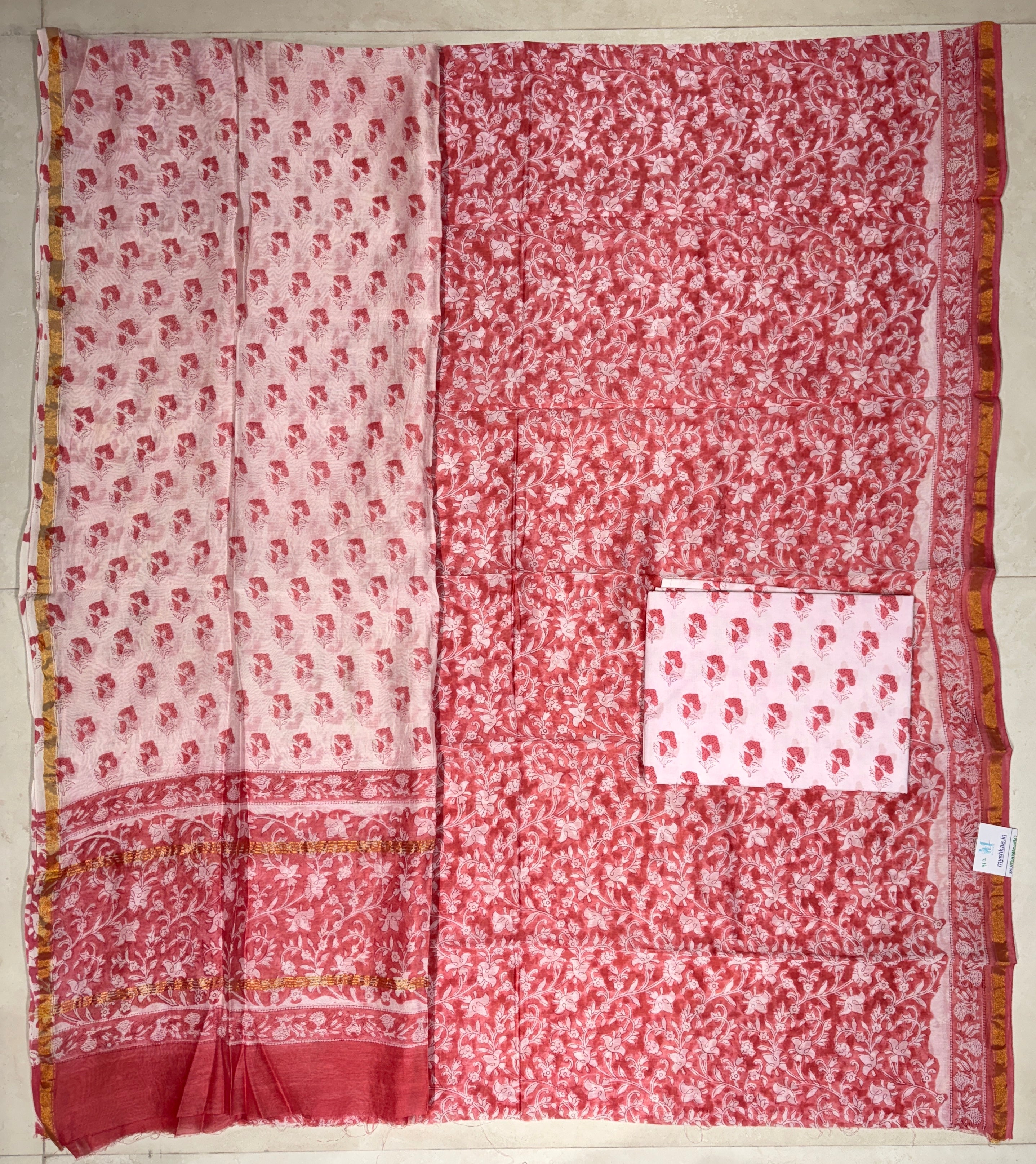 Handblock Chanderi Suit Material with Chanderi Dupatta(Lining Included)