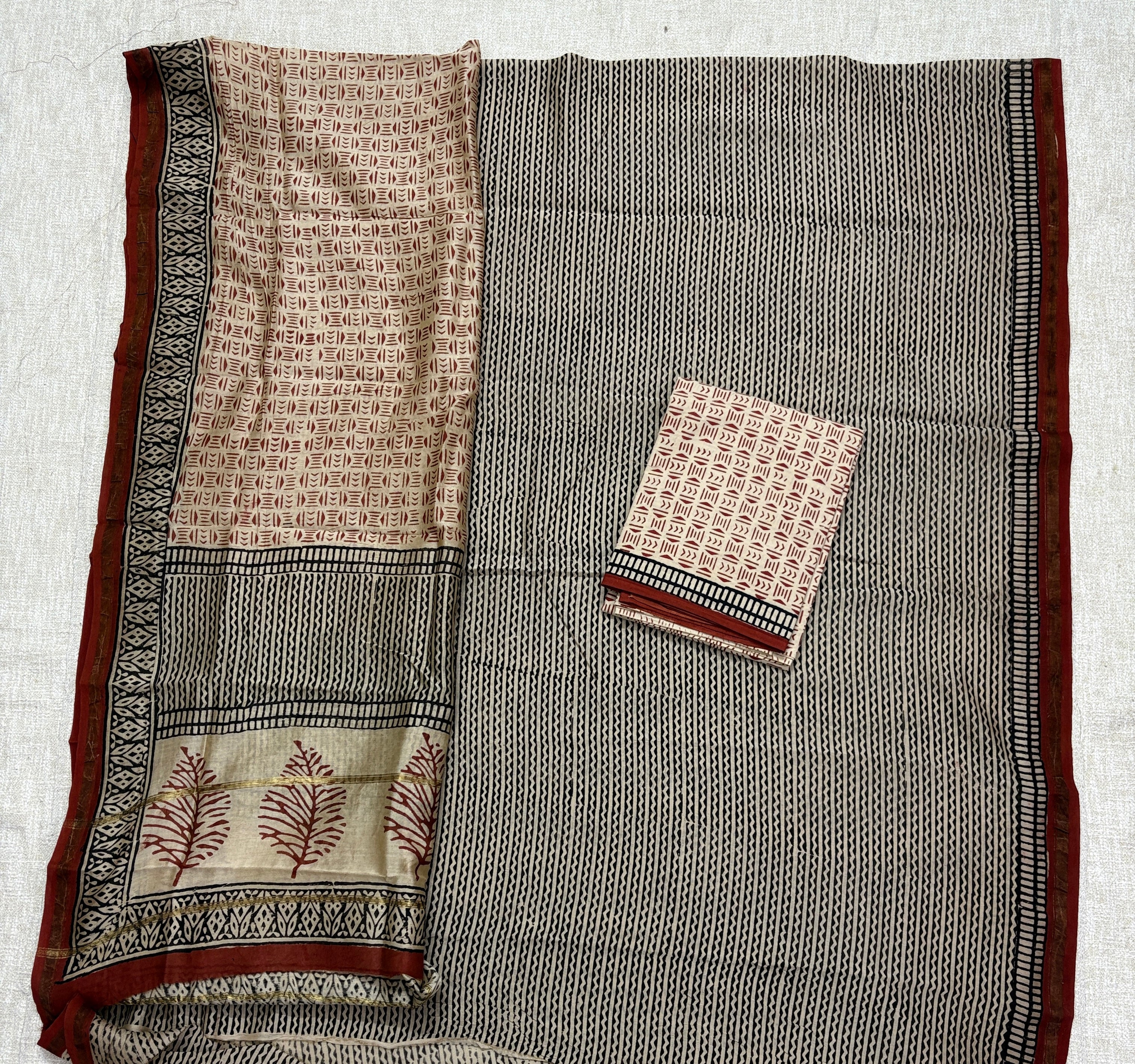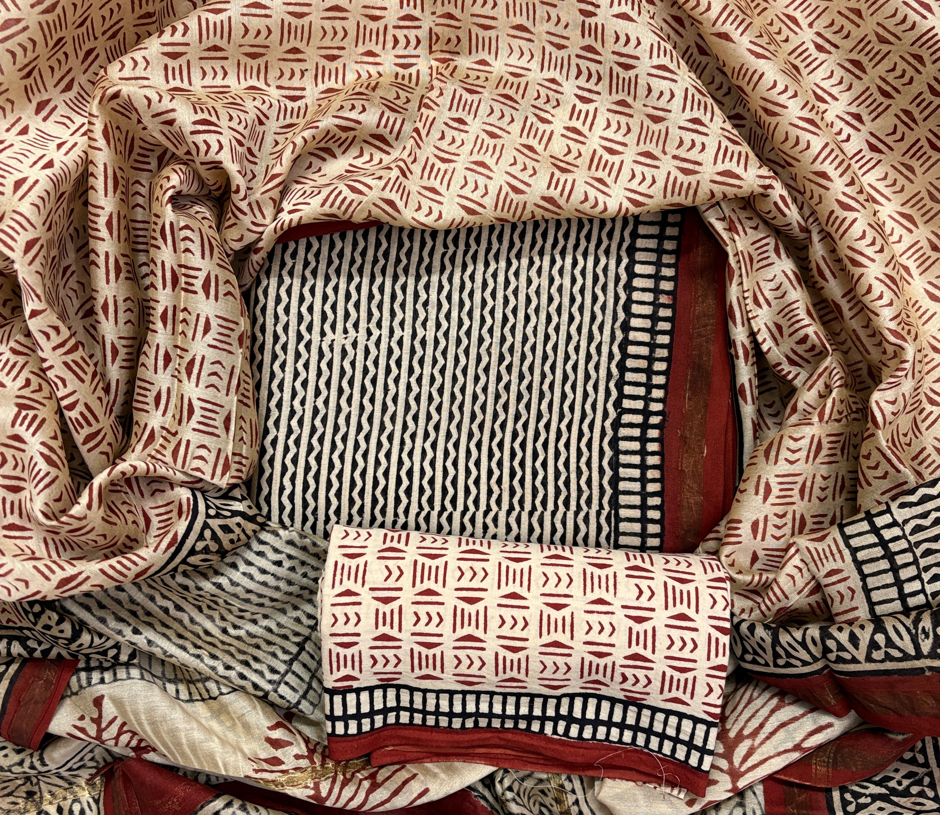 Handblock Chanderi Suit Material with Chanderi Dupatta(Lining Included)