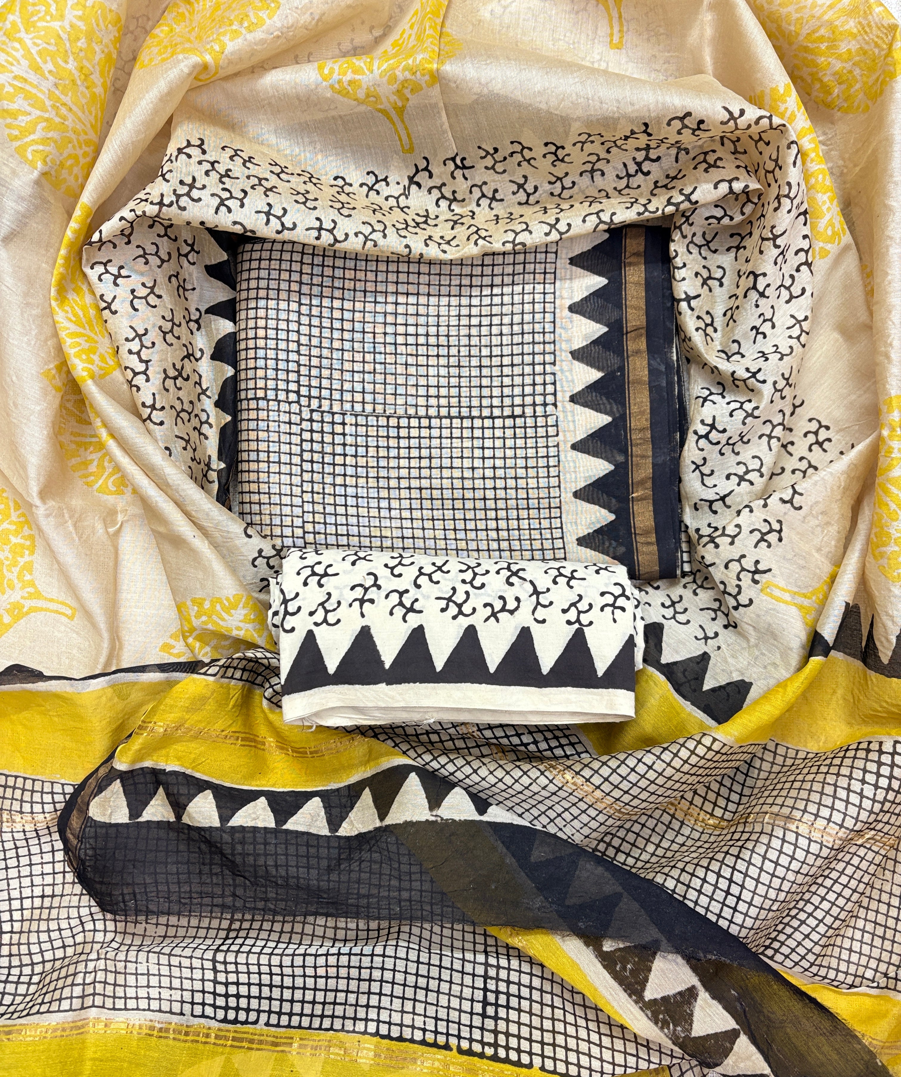Handblock Chanderi Suit Material with Chanderi Dupatta(Lining Included)