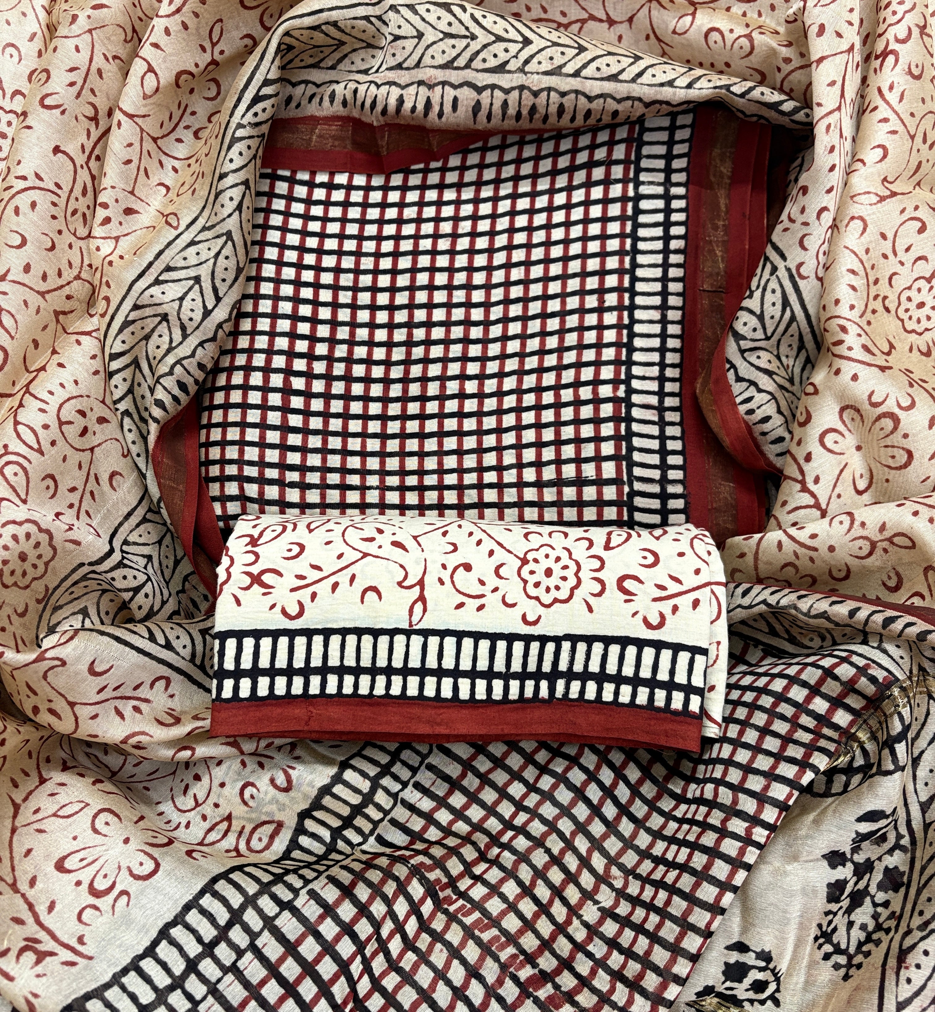 Handblock Chanderi Suit Material with Chanderi Dupatta(Lining Included)