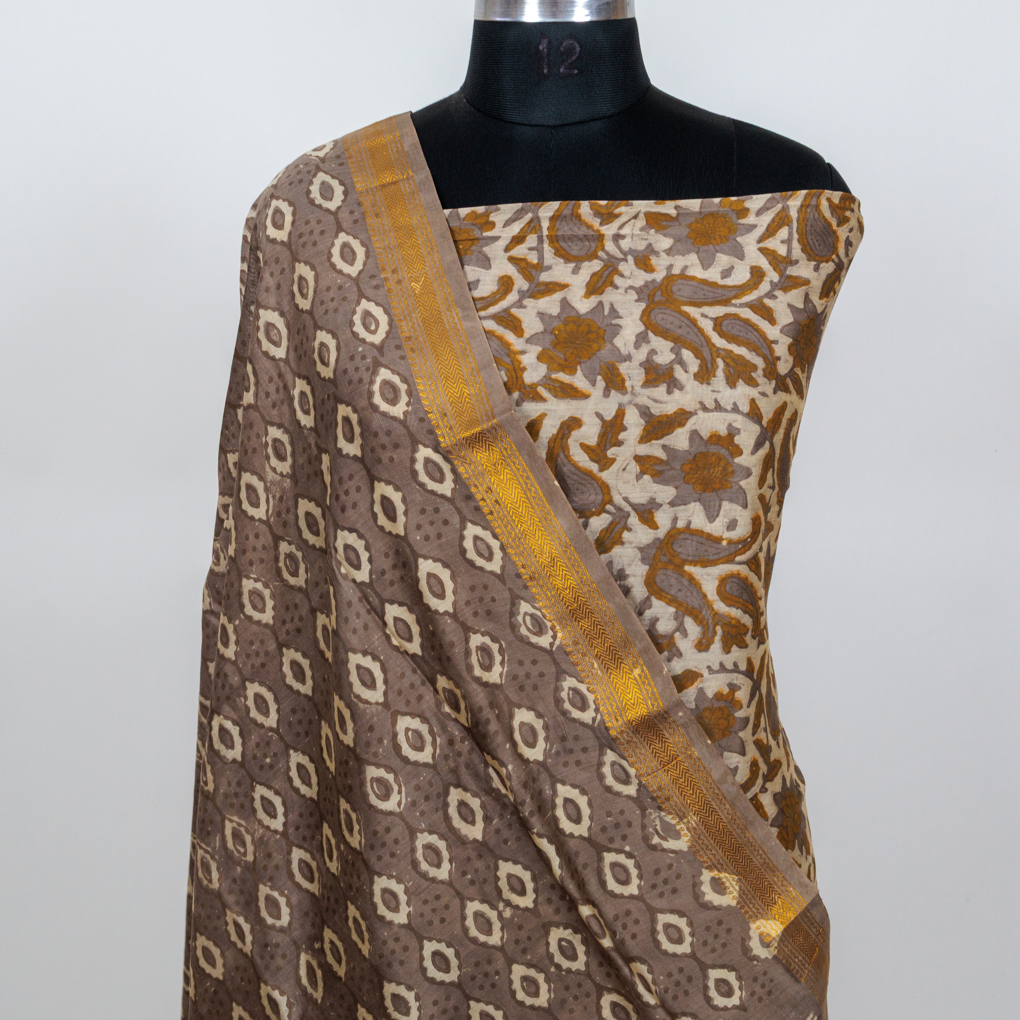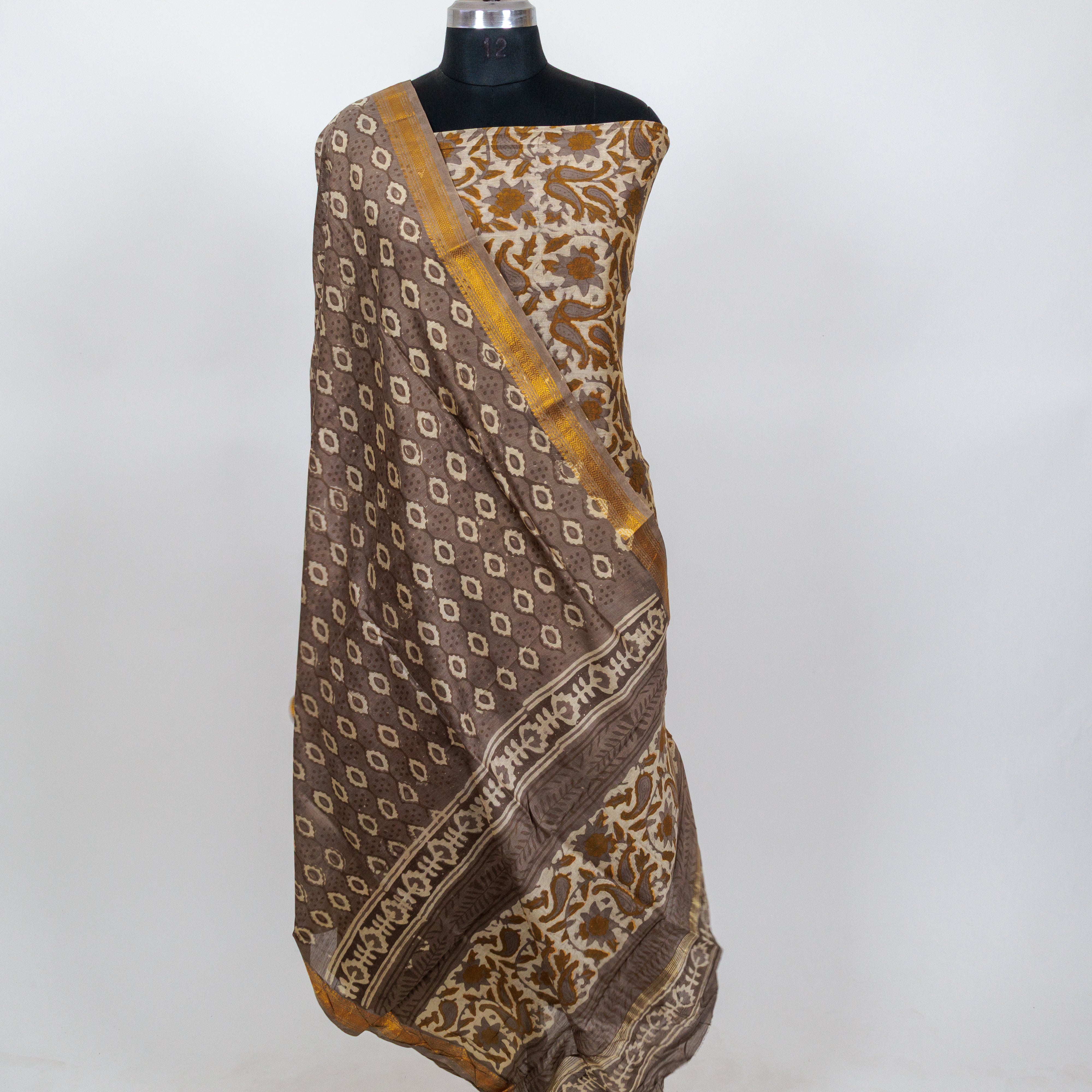 Vanaspati Ajrakh Handblock Maheshwari Suit Material with Maheshwari Dupatta