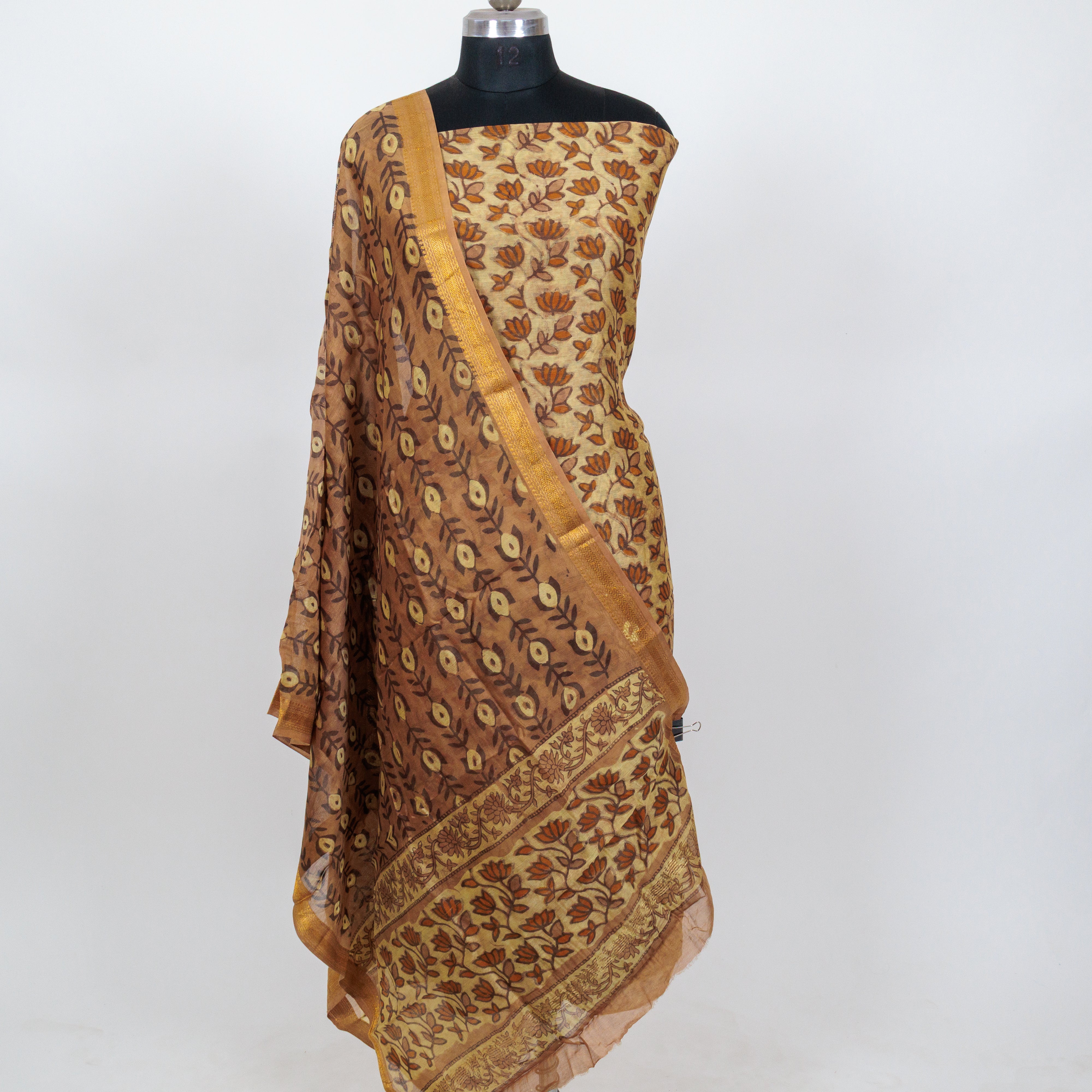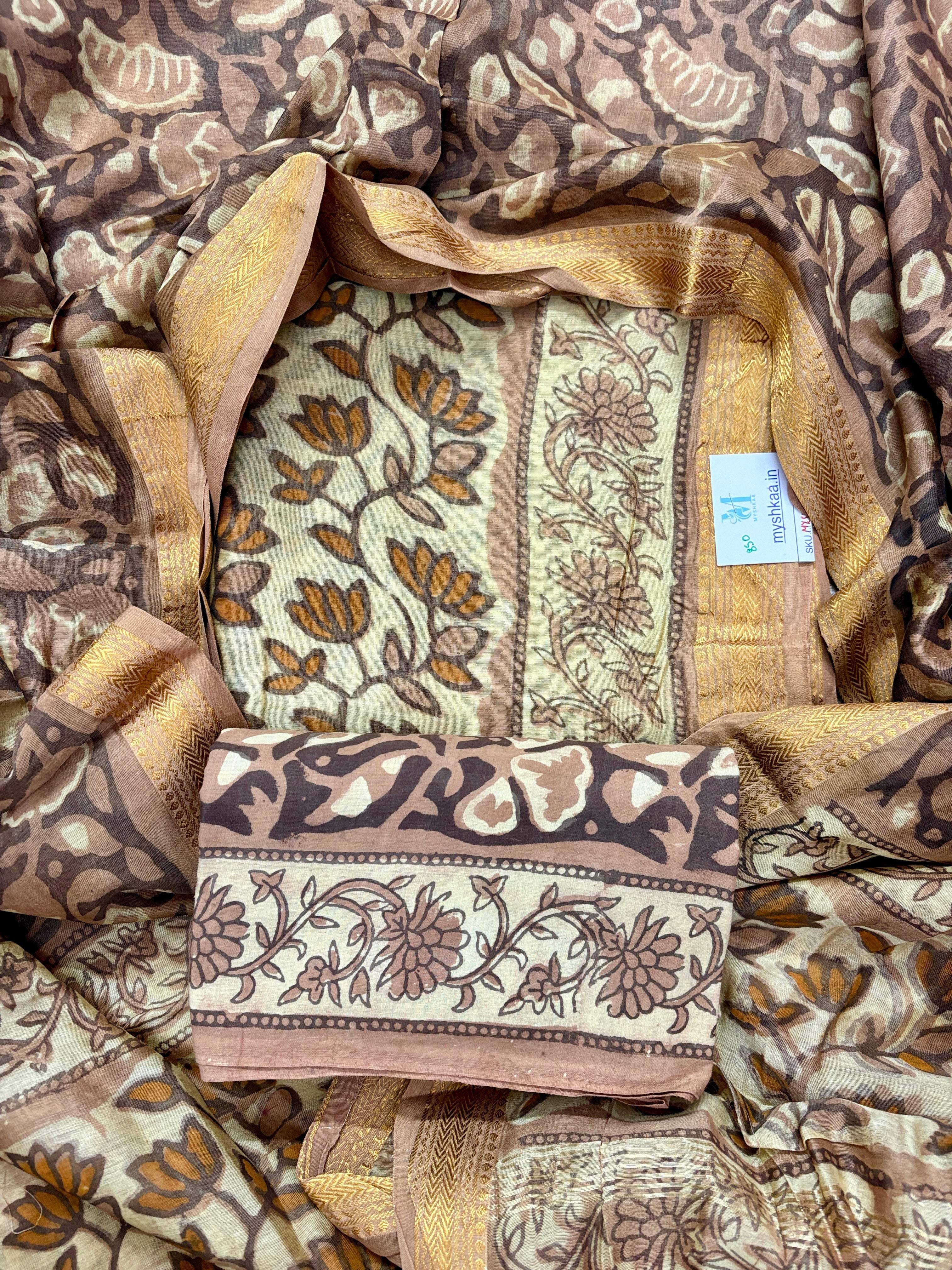 Vanaspati Ajrakh Handblock Maheshwari Suit Material with Maheshwari Dupatta