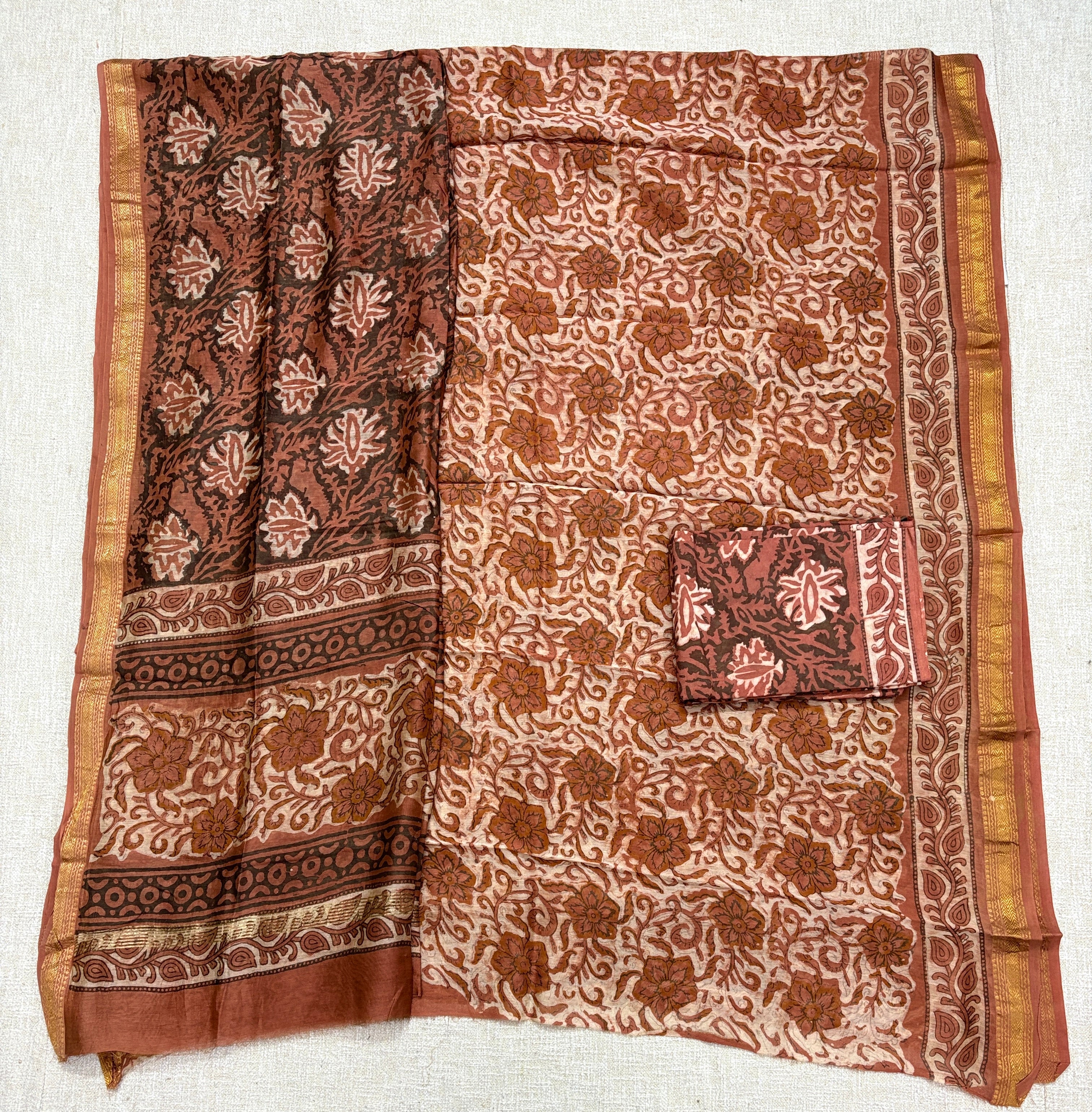 Vanaspati Ajrakh Handblock Maheshwari Suit Material with Maheshwari Dupatta(Lining Included)