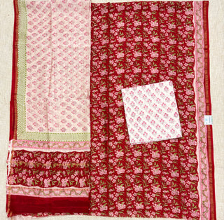 Handblock Maheshwari Suit Material with Maheshwari Dupatta(Lining Included)