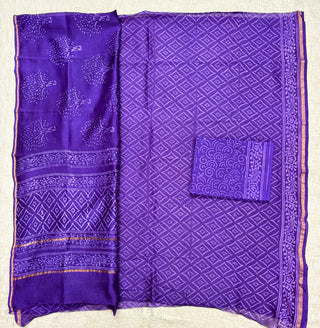 Handblock Chanderi Suit Material with Chanderi Dupatta(Lining Included)