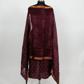Dark Red Handblock Maheshwari Suit Material with Maheshwari Dupatta