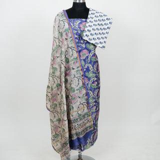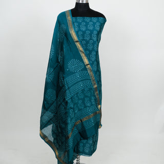 Blue Indigo Handblock Chanderi Suit Material with Chanderi Dupatta