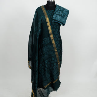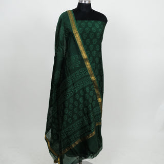 Green Handblock Maheshwari Suit Material with Maheshwari Dupatta