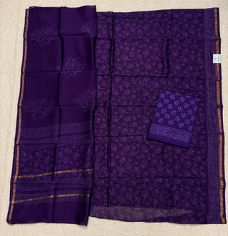 Handblock Chanderi Suit Material with Chanderi Dupatta(Lining Included)