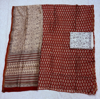 Red Ajrakh Handblock Maheshwari Top Material with Maheshwari Dupatta(Lining Included)