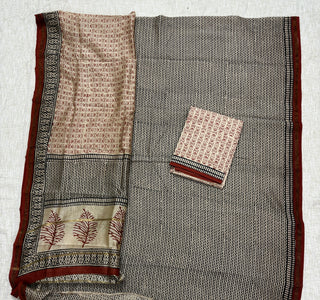 Handblock Maheshwari Suit Material with Maheshwari Dupatta(Lining Included)