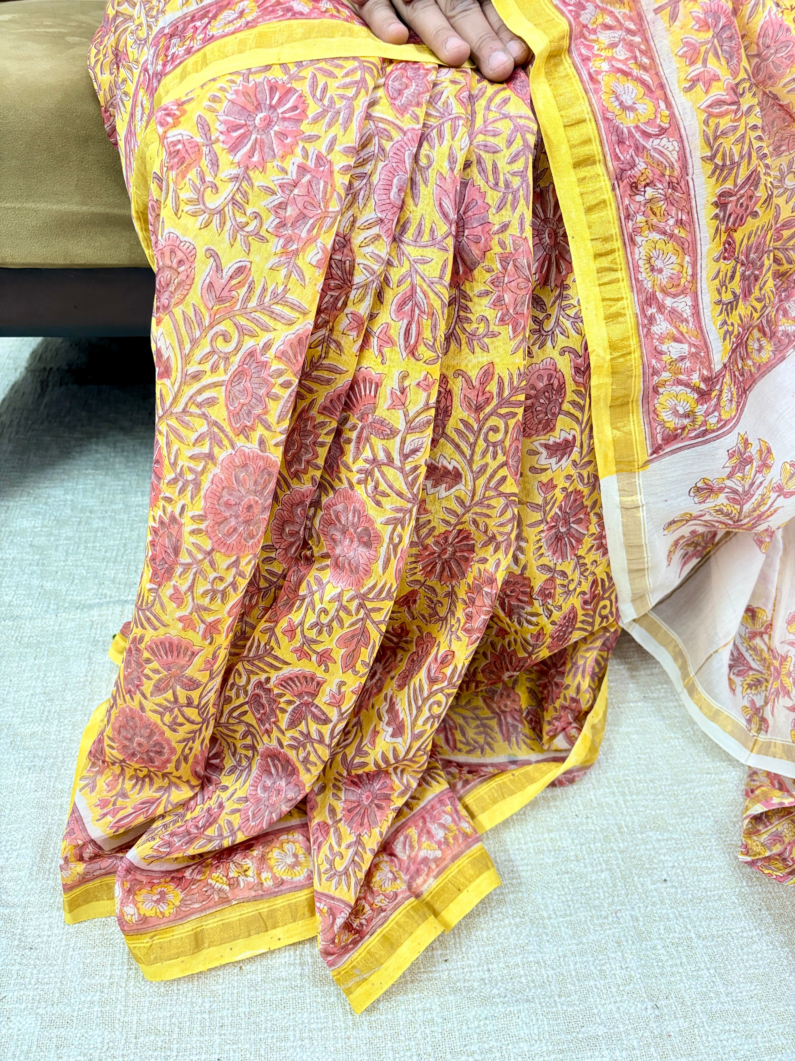 Premium Chanderi Silk Saree with Zari Border and Unstitched Blouse Piece