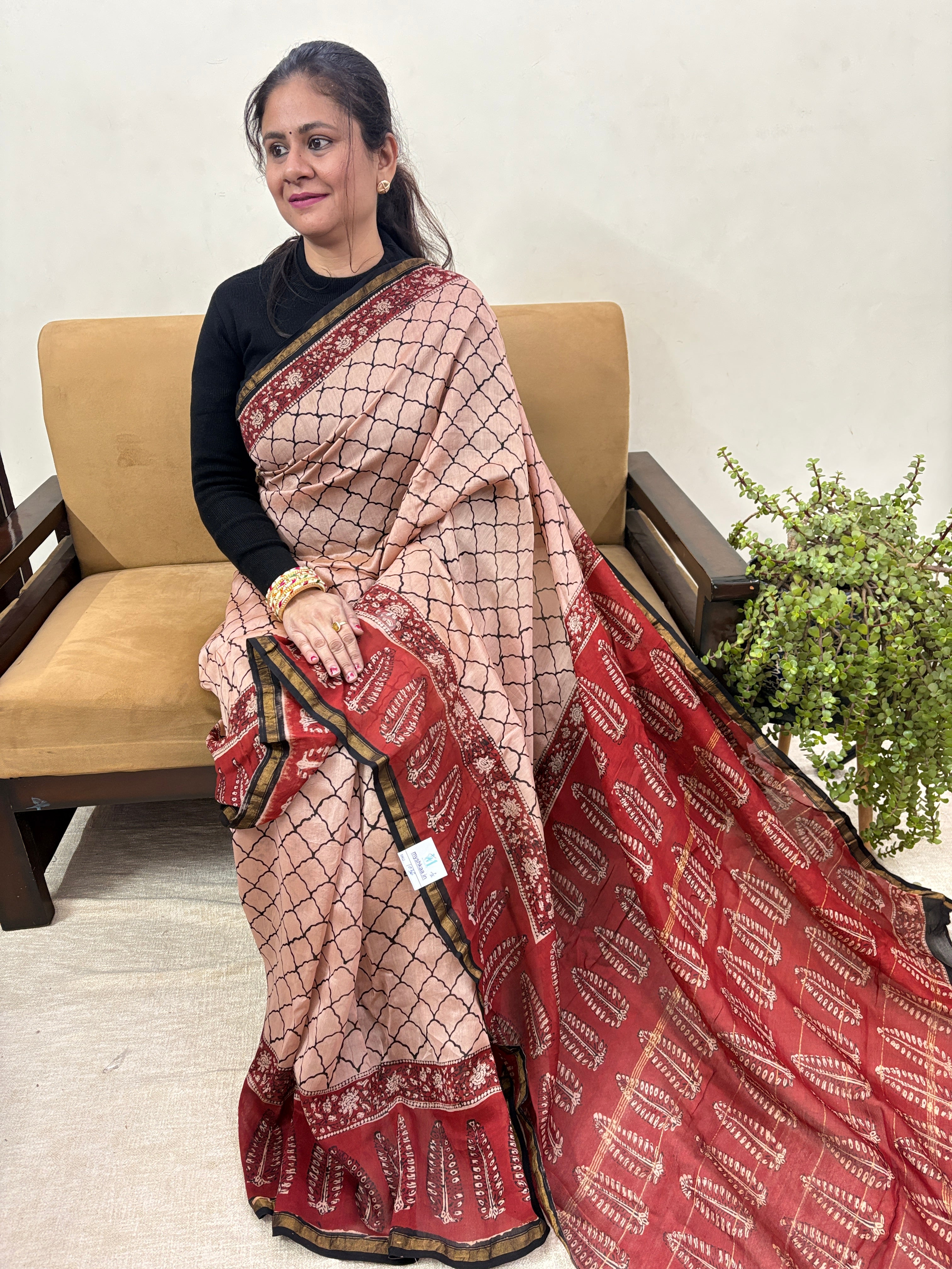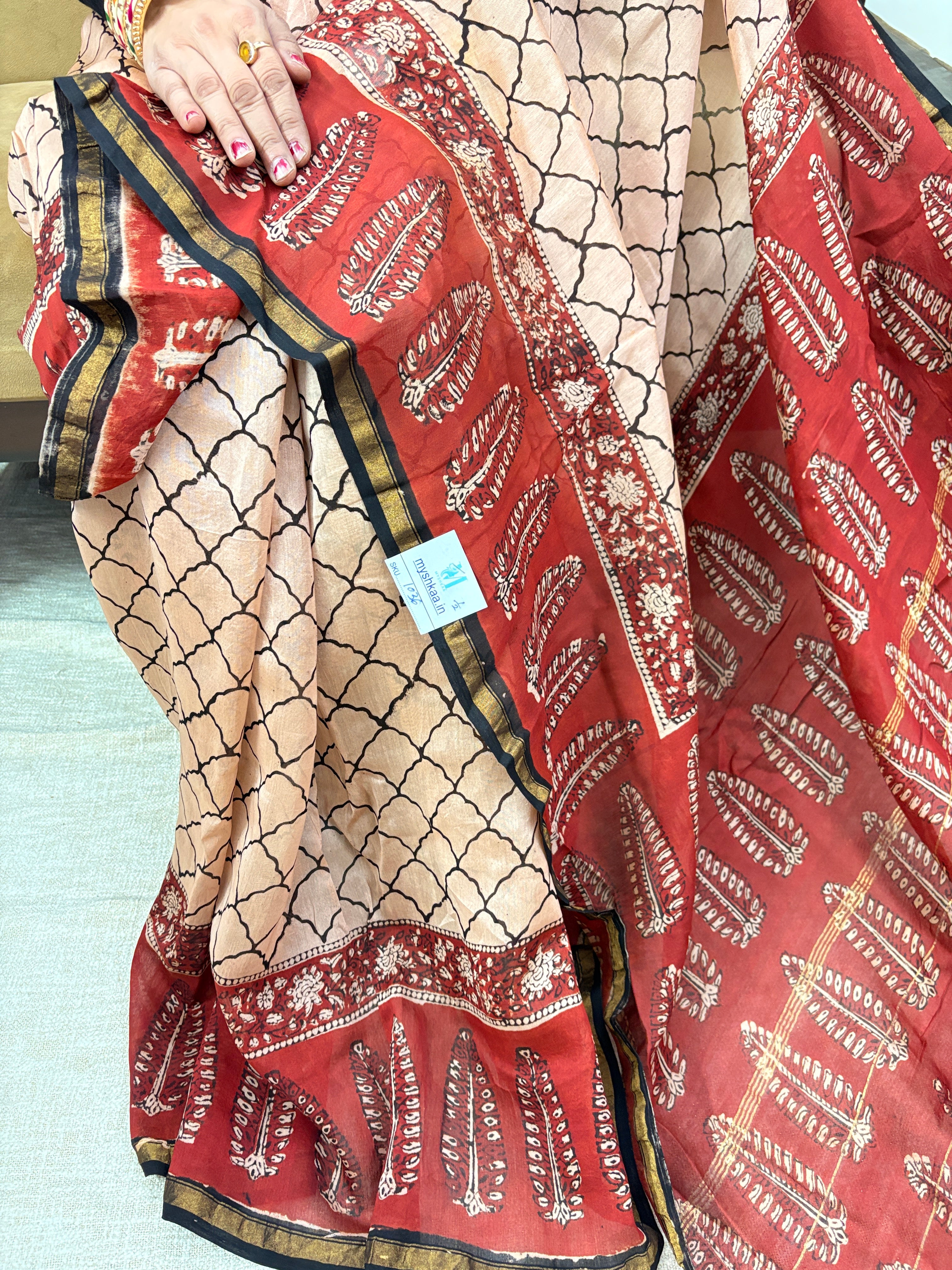 Geometric Pattern Chanderi Silk Saree with Unstitched Blouse Piece