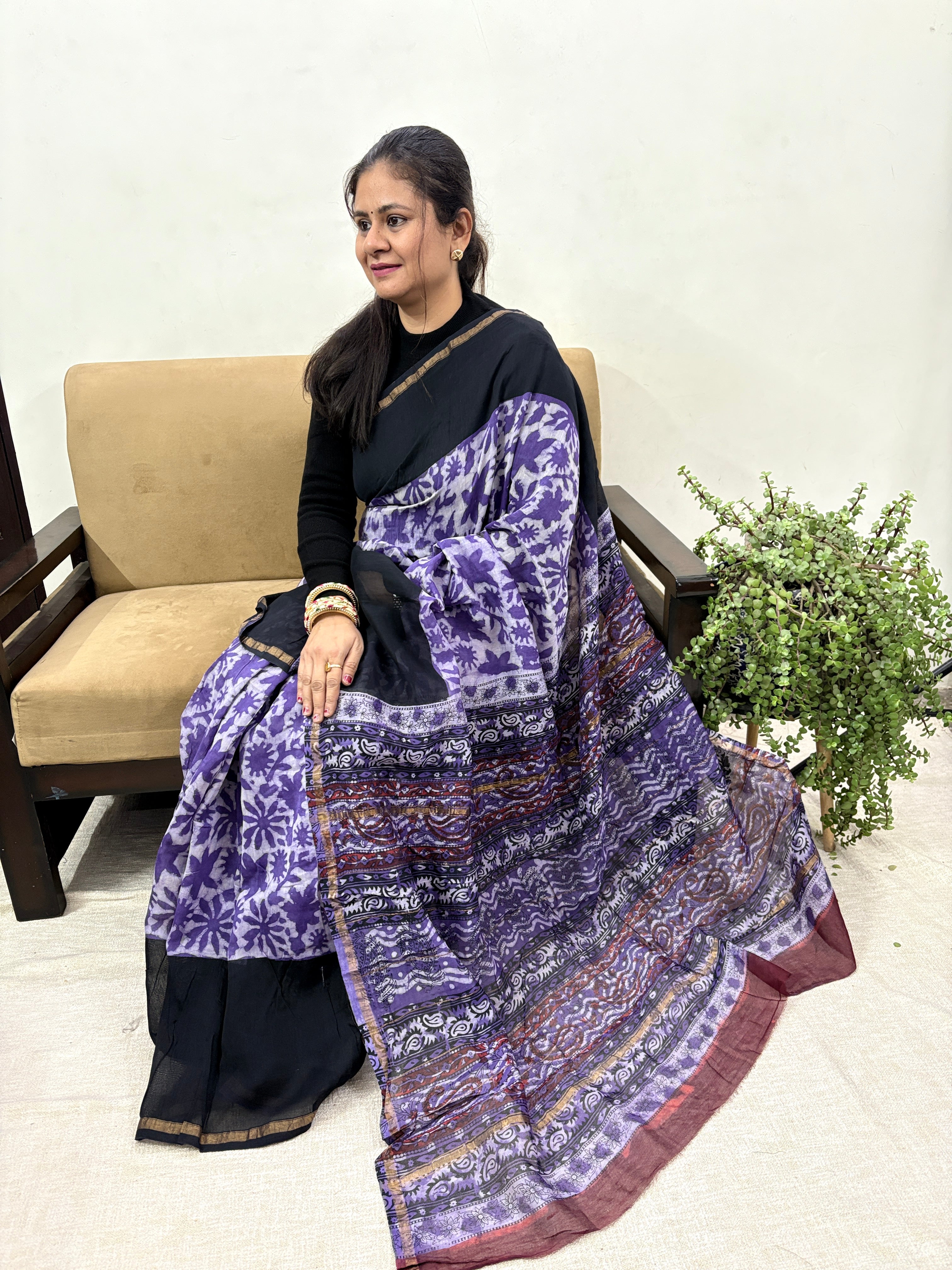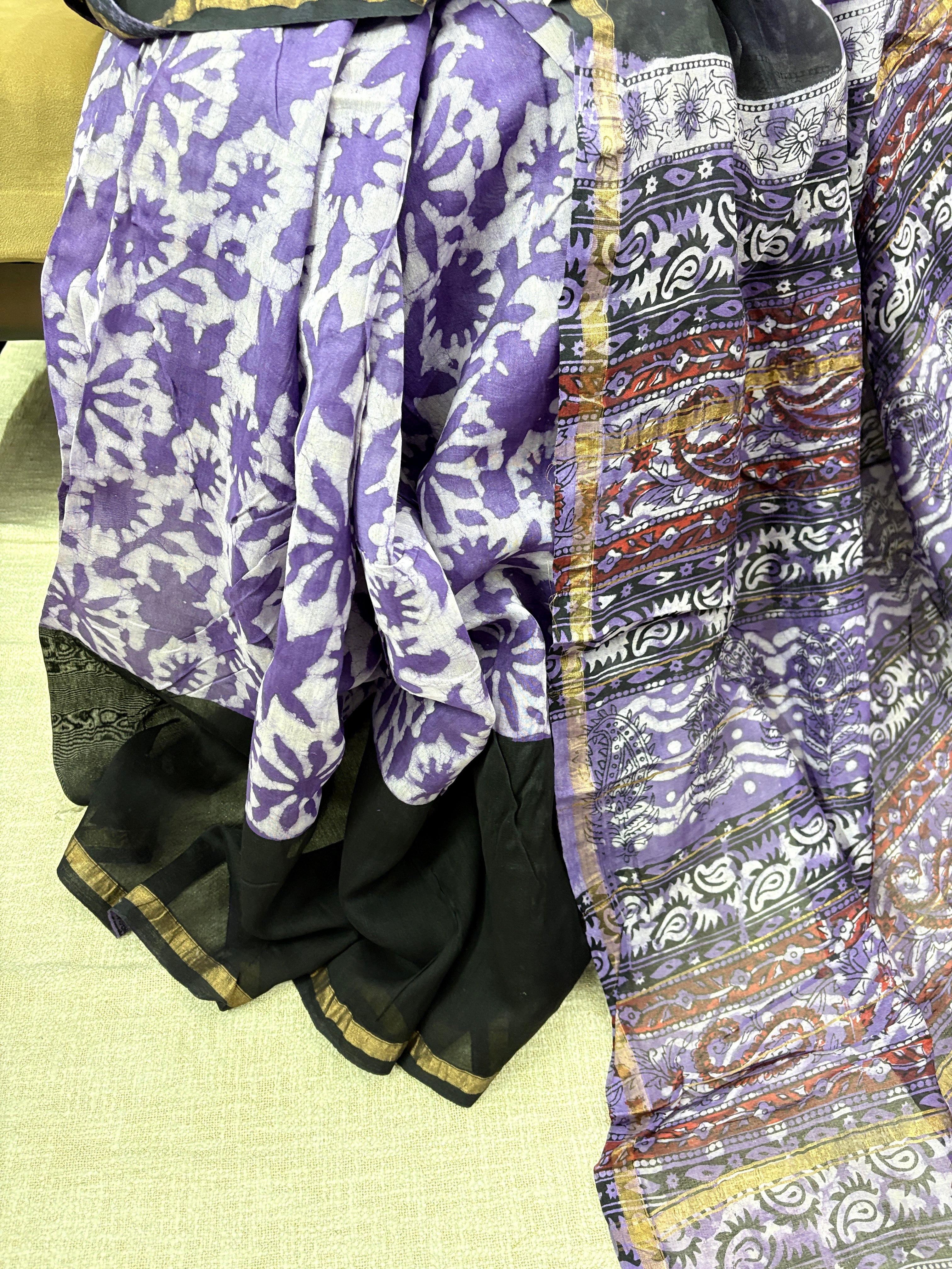 Purple Chanderi Silk Saree with Unstitched Blouse Piece
