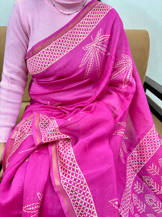 Pink Chanderi Silk Saree with Unstitched Blouse Piece (Lining Included)