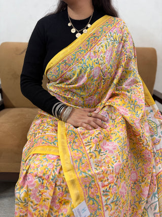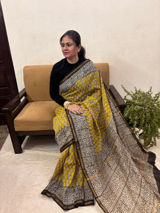 Premium Yellow Chanderi Silk Saree with Unstitched Blouse Piece (Lining Included)