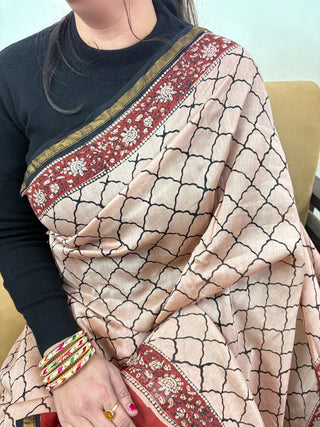 Cream Half-and-Half Chanderi Silk Saree with Unstitched Blouse Piece (Lining Included)